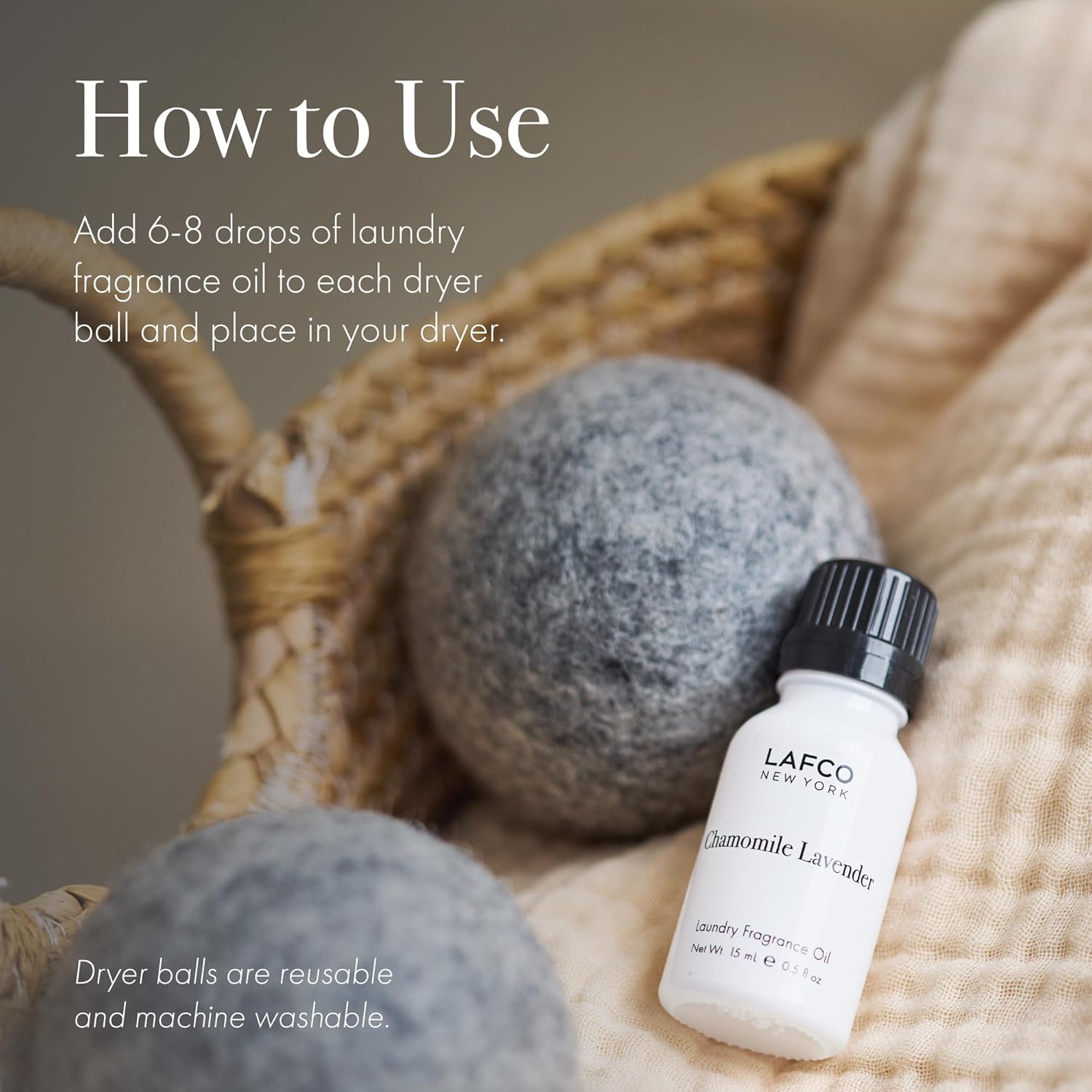 LAFCO New York Dryer Ball & Laundry Fragrance Oil Set, Chamomile Lavender - Soften, Scent & Dry Fabrics in Less Time - Reduces Static & Lint