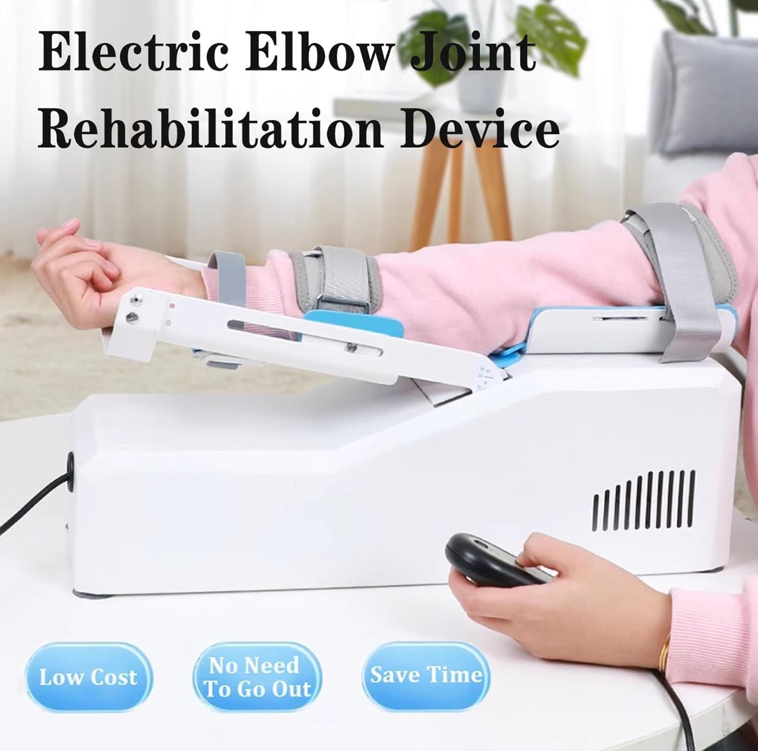 Electric elbow rehabilitation device can set the training mode and speed, start/pause with one button, and gently move the stiff joints. The purpose of the flexion and extension trainer is to promote muscle function recovery, relieve elbow muscle stiffness, maintain and improve elbow joint range of motion, enhance local blood circulation, and help patients transition from passive training to autonomous training.Specification :Name: Elbow Joint Rehabilitation DeviceMaterial: ABSVoltage: 110-220VModes: ManualFlexion and Extension Angle: -5°~145°Size: Universal, for EveryoneApplicable: Left Hand & Right HandWeight: 7.5KGPackage Includes :1 X Elbow Joint Rehabilitation Device