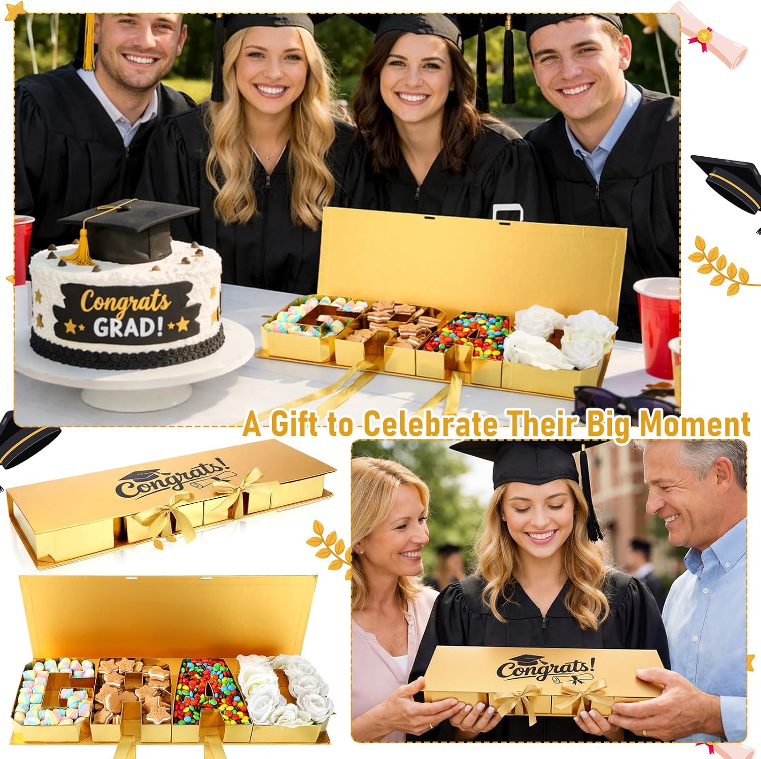 Features: Ideal Choice: Each package contains one complete graduation letter box pre-adorned with ribbons, ready for gifting or immediate use. The elegant gold color and classic graduation motifs make it visually appealing for any celebration. Ideal Gifts: This graduation gift box is ideal for graduation party favors, event decorations, or as a memorable wrapping alternative to standard boxes. It serves as both a practical container and a decorative keepsake that highlights the graduate's special day. Specifications: Material: cardboard Color: gold Size: about 22 x7.5 x2 inches Package includes: 1 x Graduation gift box Notes: Manual measurement, please allow slight errors on size. The color may exist a slight difference due to different screen displays