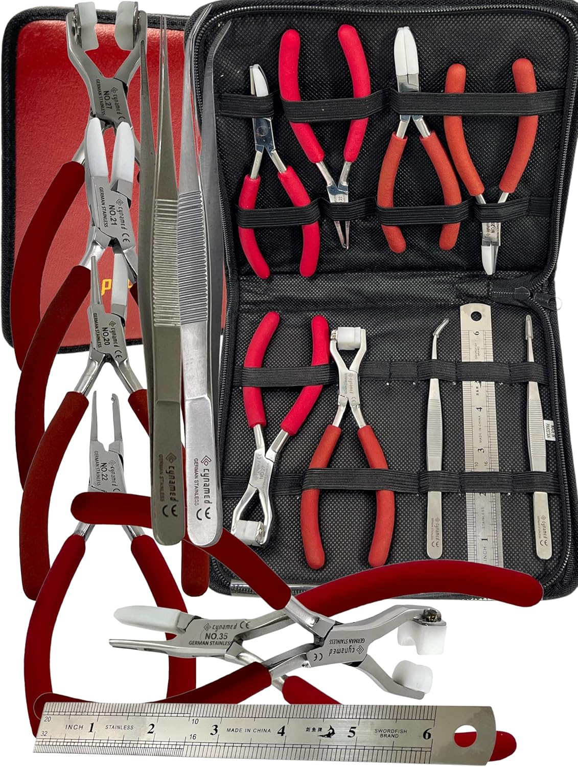 Professional Premium German Set of 9 -Eyeglass Optical Optician Tools Pliers Bent Nose Rimless Set-Optical PLIER KIT -Adjusting Eyeglass Arms Frame Plier Set -Optical Eyeglasses Eyewear Repair Tool Plier set