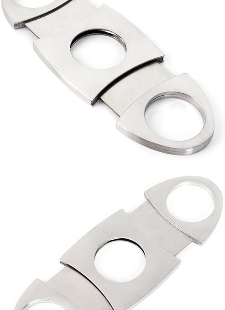 This premium cigar cutter is designed to cleanly and precisely cut your cigar every time, enhancing your cigar smoking experience. It features a hardened stainless steel blade that remains sharp even after repeated use, fits most cigar ring gauges (32-60), and can be operated with one hand with a simple press. Compact and lightweight, it easily fits into a humidor or pocket for convenient carrying. Durable and rust-resistant, this cigar cutter is crafted for cigar aficionados, ensuring a smooth and even burn every time.