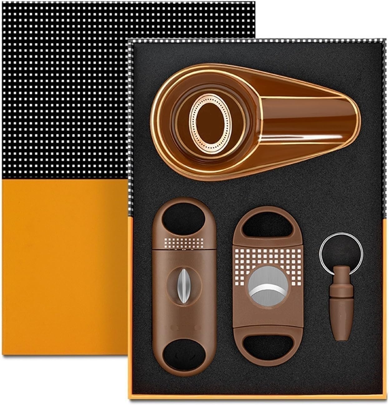 This premium cigar cutter is designed to cleanly and precisely cut your cigar every time, enhancing your cigar smoking experience. It features a hardened stainless steel blade that remains sharp even after repeated use, fits most cigar ring gauges (32-60), and can be operated with one hand with a simple press. Compact and lightweight, it easily fits into a humidor or pocket for convenient carrying. Durable and rust-resistant, this cigar cutter is crafted for cigar aficionados, ensuring a smooth and even burn every time.