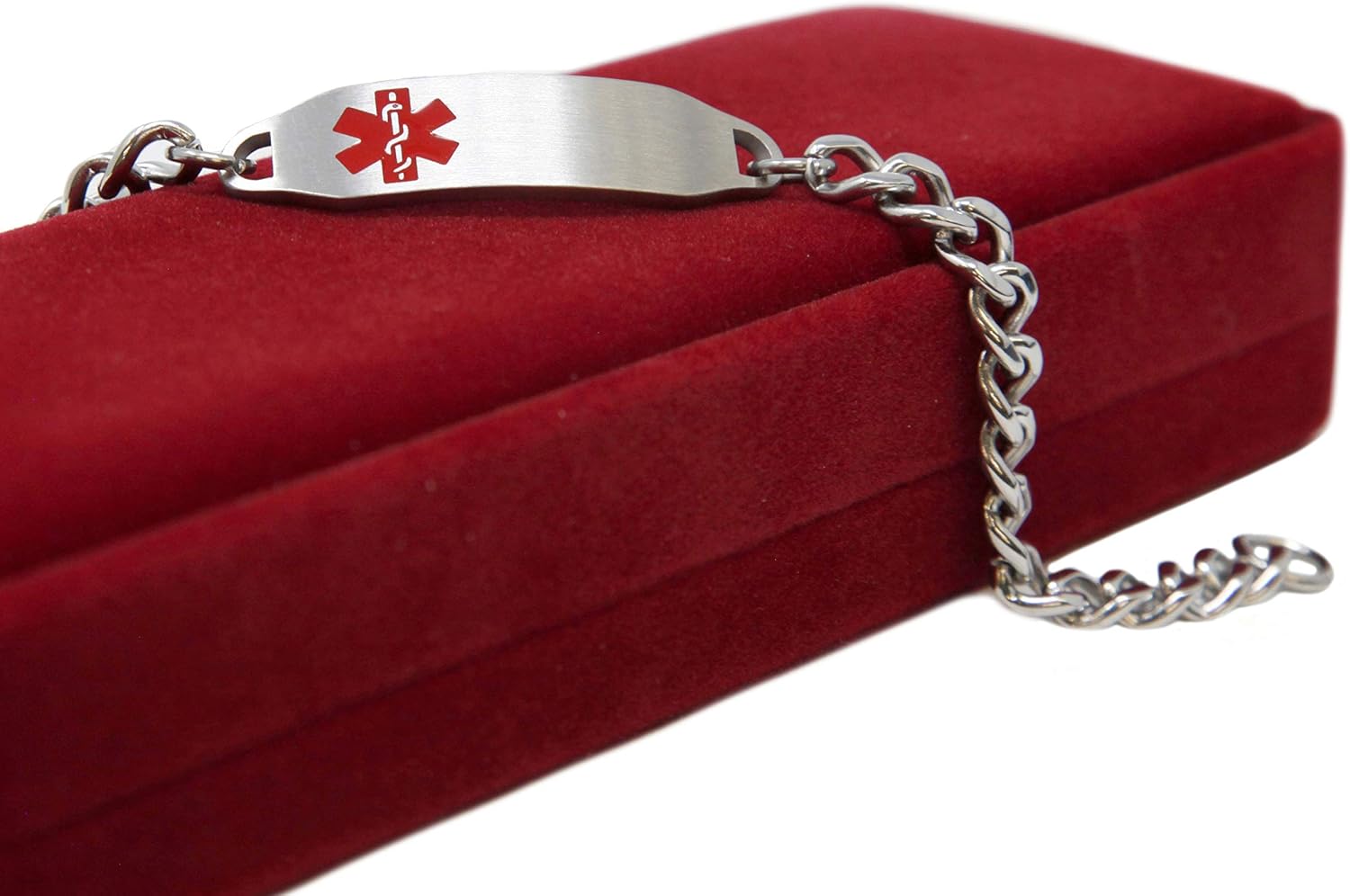 This HYPOGLYCEMIA medical bracelet is custom engraved with information to assist you in an emergency. (see photos) The medical alert bracelet is made of smooth curbed 316L stainless steel links which rest comfortably on your wrist. The ID plate is also made of 316L stainless steel and has a fine brushed finish on the front to assist with hiding wear and tear. The back of the medical ID tag also has a brushed finish which enhances the visibility of the engraving. This medical ID bracelet is custom engraved & pre-engraved. This means HYPOGLYCEMIA is pre-engraved at the top of the ID plate (see photo) and before checkout you can add custom information. Adding engraving is easy. The add to cart button says “Customize It” click that and follow the steps. Medical ID bracelets should be worn on the left arm at all times. This medical bracelet will not tarnish and can be worn in and out of the shower and bath without any issue. The stainless steel is strong and durable for everyday use and can with stand normal wear and tear without issue. The chain is adjustable using proper tools if needed. This item is perfect for kids 13+ and adults. This medical alert bracelet also has a LIFETIME WARRANTY** for the engraving. The medical tag is engraved in a bold BLACK font which makes it easy for Doctors and Paramedics to easily read your medical ID. (see photos) The brushed finish helps prevent glare to allow legibility regardless of the lighting. This medical ID bracelet is the best bracelet in times of an emergency, and wearing it will give you the peace of mind you need. **LIFETIME WARRANTY covers this piece of medical jewelry if engraving is ever worn off without intentional harm to the medical ID tag. Item will need to be sent back to My Identity Doctor and return shipping/handling is paid by the buyer.