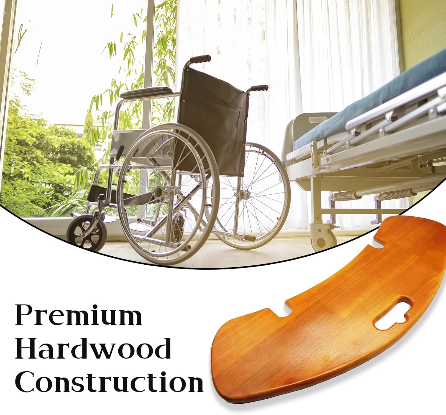 "Empower independence with our Transfer Board for Wheelchair Transfer, designed to simplify daily transitions safely and comfortably. Made from premium hardwood, this slide board combines strength (400 lb weight capacity) with a lightweight build (4 lbs), ensuring durability without sacrificing portability. Whether moving from bed to wheelchair, car to wheelchair, or navigating uneven surfaces, its 28” x 8.4” dimensions offer stability and reach. The polished surface minimizes friction for smooth sliding, while rounded edges prevent skin irritation. Perfect for home use, travel, or healthcare facilities, this transfer board is an essential mobility aid for individuals and caregivers alike."