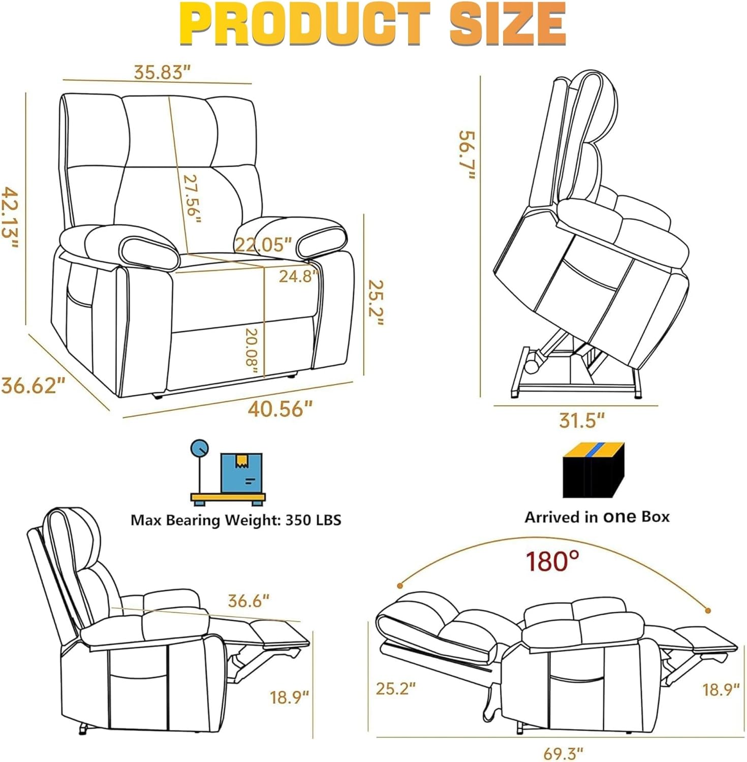 Package Includes:- 1 x Electric Lift Recliner Chair- 1 x Remote- 1 x Manual