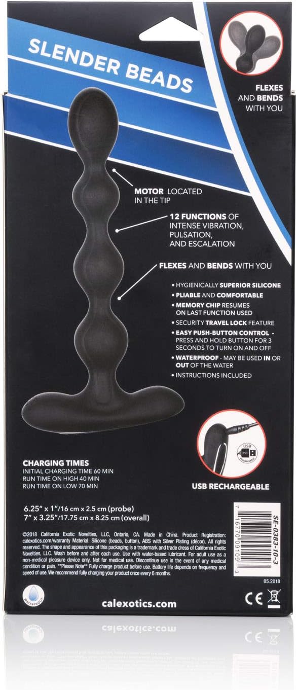 The CalExotics Eclipse Slender Beads are smooth, body‑safe pleasure beads with a slender design for comfortable, gradual insertion. Their flexible, connected construction and easy retrieval loop make them perfect for both beginners and experienced users seeking gentle, rhythmic stimulation.