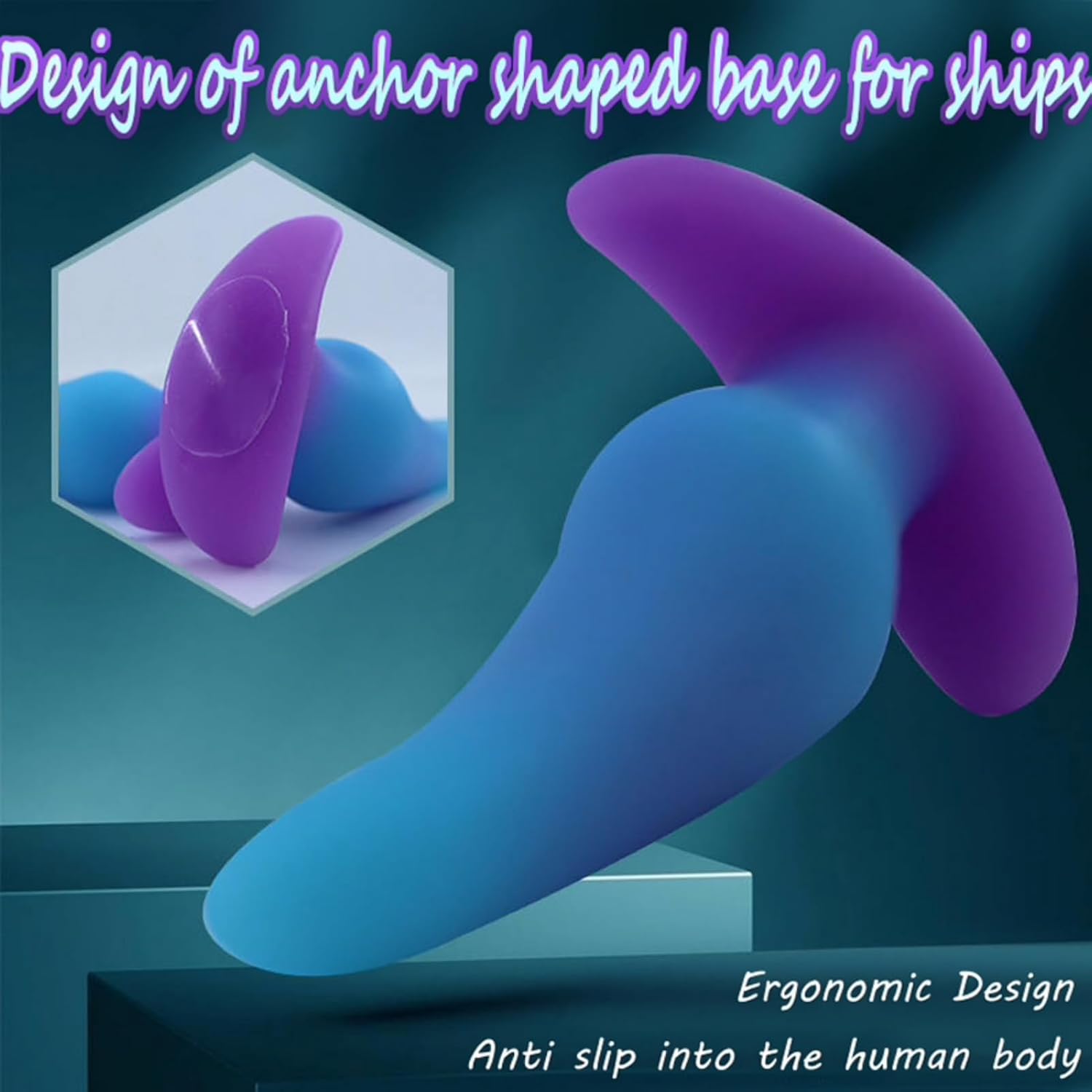 Blue silicone butt plug training set adult sex toy for women, wearable soft anal toys for stretching anal butt plug with purple flared based