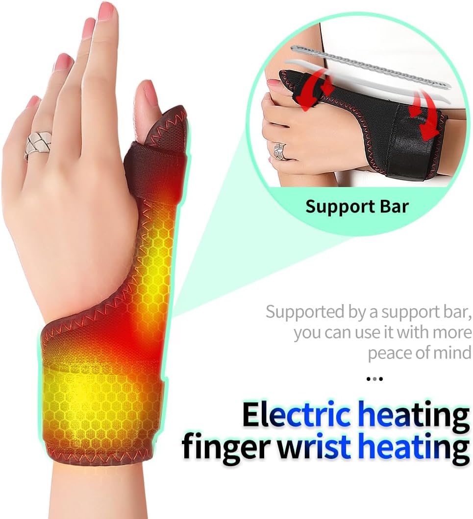 Experience soothing relief for your hands and wrists with this innovative electric heating pad. Featuring adjustable temperature settings and customizable vibration modes, this versatile device helps alleviate discomfort from repetitive strain, joint stiffness, and wrist pain. The thoughtfully designed support bar ensures stable positioning while you work or rest. With convenient USB-powered heating and multiple timing options (15-60 minutes), you can easily,this heating pad into your daily routine at home or office. The comfortable wrap-around design provides targeted warmth to fingers, thumb, and wrist areas. Perfect for those who spend long hours typing, using a mouse, or dealing with hand fatigue. The controller offers three heat levels (Low/Middle/High) for personalized comfort. This portable heating solution is for office workers, gamers, and anyone seeking warming comfort for their hands. The durable construction and secure fit make it practical for regular use while working,