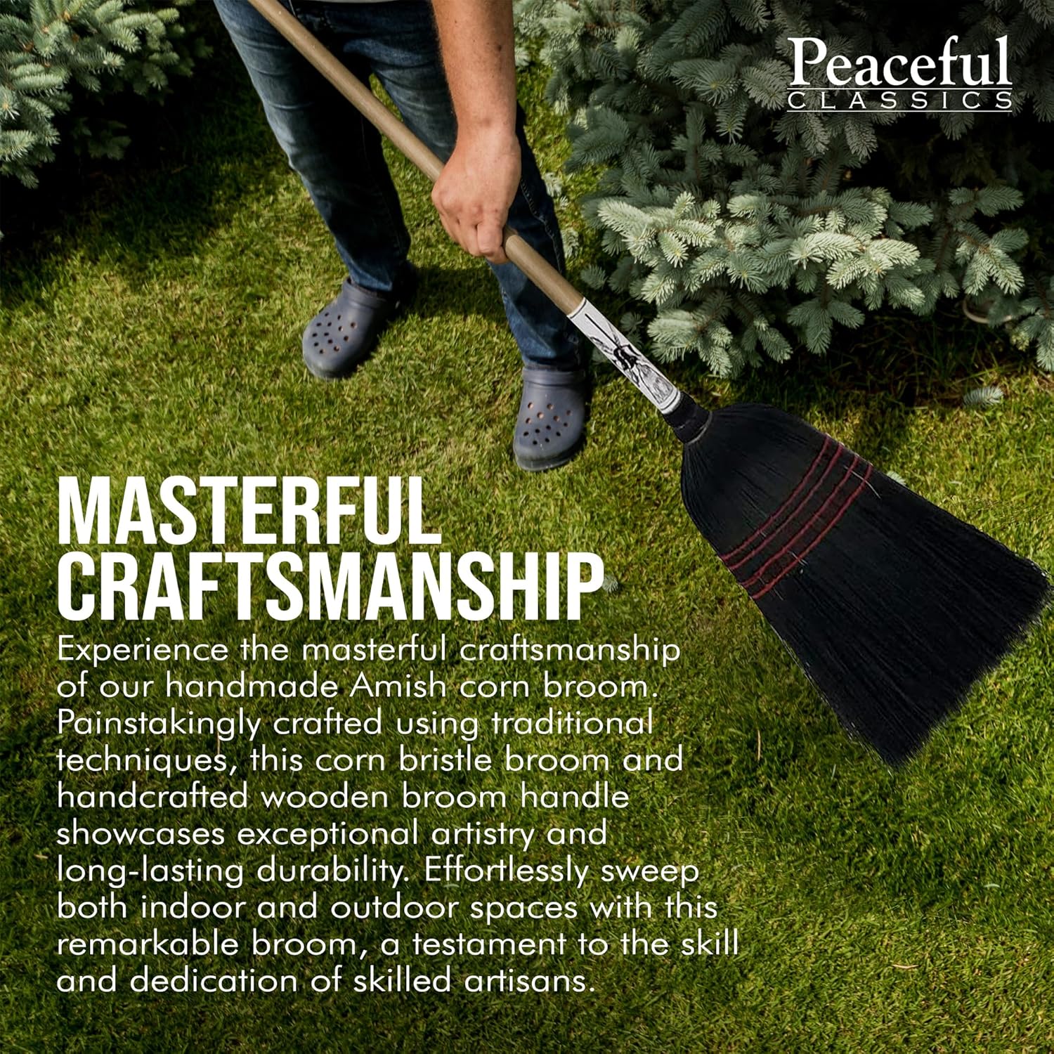 Heavy-Duty Amish Corn Broom – Handcrafted Outdoor & Indoor Straw Broom with Wooden Handle – 57” Long Tough Messes Don’t Stand a Chance Conquer the toughest cleaning jobs with ease using our Premium Amish-Made Corn Broom. Crafted to withstand heavy-duty use, this broom is your go-to solution for both indoor and outdoor sweeping—from dusty barns and garages to porches, patios, and even old carpets. Superior Craftsmanship You Can Trust Each broom is individually handmade by skilled Amish woodworkers in Lancaster County, Pennsylvania, ensuring unmatched quality and durability. Featuring four rows of hand-sewn reinforced stitching, this broom is built to last through job after job without losing bristle strength or shape. Designed for Power & Comfort Full Dimensions: 57" total length Broom Head: 19" long x 12" wide Wood Handle Diameter: 1¼" thick for a sturdy, comfortable grip Versatile & Rugged Performance The stiff, natural corn bristles are tough enough to sweep debris from concrete, wood, and even old rugs, making this broom ideal for workshops, warehouses, construction sites, and homes alike. Why Choose Our Corn Broom? ✔ Handcrafted in the USA ✔ Built for both outdoor & indoor use ✔ Long-lasting, reinforced bristles ✔ Eco-friendly natural materials ✔ Comfortable, ergonomic wooden handle Experience the difference of true craftsmanship—order your heavy-duty Amish corn broom today and make cleaning less of a chore and more of a breeze!