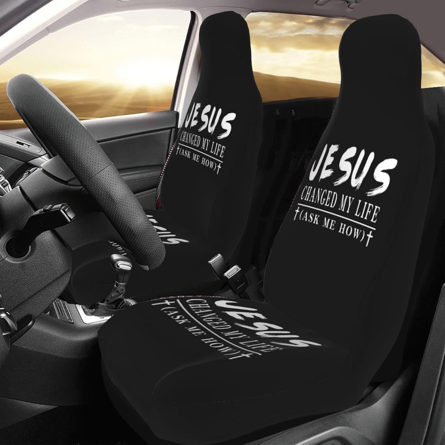 Full Set Of 2 Pcs Automotive Front Seat Covers With The Unique Jesus Changed My Life Christian Cross Print Design, This Seat Cover Would Be A Perfect Choice To Decoration The Interior Of Your Car.Material :High-Quality Polyester Seat Cover Fabric---Breathable, Feel Comfortable, Anti-Dirty, Wear-Resistant, Easy To Clean, Do Not Fall Off, Summer Will Not Be Too Hot Winter Will Not Be Too Cool, Four Seasons General Advanced Seat Cover.Suitable Size :Suitable For Almost Universal Automobile Cars,Trucks, Vans, Suv.Easy To Install :Elastic Strap With Hooks On The Bottom Of The Seat Covers, Installation Can Be Done At Anywhere Easily By Following Directions.Design :1. One Sundries Pocket : The Seat Cover Has One Pocket At The Back For Storing Sundries. Keeping Your Vehicle Cleaner Throughout The Year. Great For Pets, Drinks, Food & Dirt.2. Choose Your Like Jesus Changed My Life Christian Cross Pattern Design For A New Look Of Your Car'S Interior.About The Universal Fit :Our Seat Covers Are Universal Fit Car Seat Cover Will Stretch To Fit Most Car And Suv Bucket Style Seats But Not 100%, If You Are Not Sure Whether Fit Or Not, Contact Us With Your Car Interior Pictures Or Refer To The Pictures Of Compatible Size And Incompatible Reasons.Washing Instructions :Machine Washing Can Be Washed By Hand, Fast Drying, Easy Care, Durable.