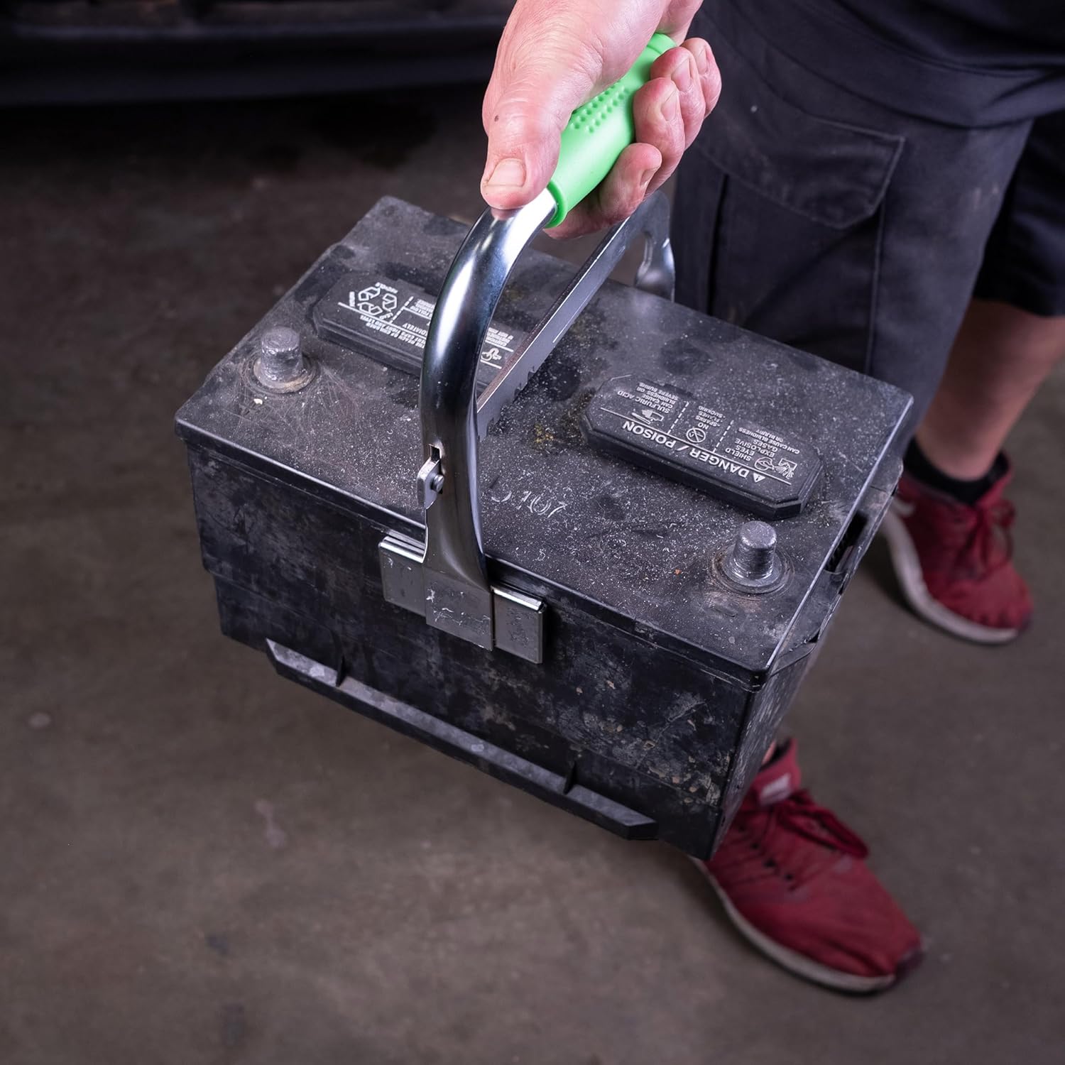 Product Description The OEMTOOLS 25316 Battery Carrier offers a safe and easy way to grab, lift, and carry top post or side post batteries. This auto battery lifter is perfect for use on battery-powered machines, making this a great golf cart battery lifter and an ideal car battery lifting tool for campers, ATVs, and lawnmowers. Our automotive battery carrier also comes in handy as a battery tool for mechanics who perform battery changes on a variety of automobiles. The clamps for battery gripping feature rubber pads that securely grip battery widths from 5 inches to 7 inches. Our car battery tool includes a plastic battery carrier handle that provides a firm hold as you're lifting or carrying the battery. The car battery pickup tool lifts batteries out of compartments or automobiles without causing damage to the battery or injury to the user. This battery carrier tool is designed for heavy-duty applications, providing a secure grip every time while making the task of removing, installing, or carrying batteries much quicker and easier than working without a car battery puller. Item Package Dimension: 9.95 Inches x 7.65 Inches x 3.75 Inches. From the Manufacturer Safe and easy way to grab, lift, and carry top post or side post batteries. The rubber pads securely grip battery widths from 5-inch to 7-inch while the plastic handle-grip provides a firm hold.