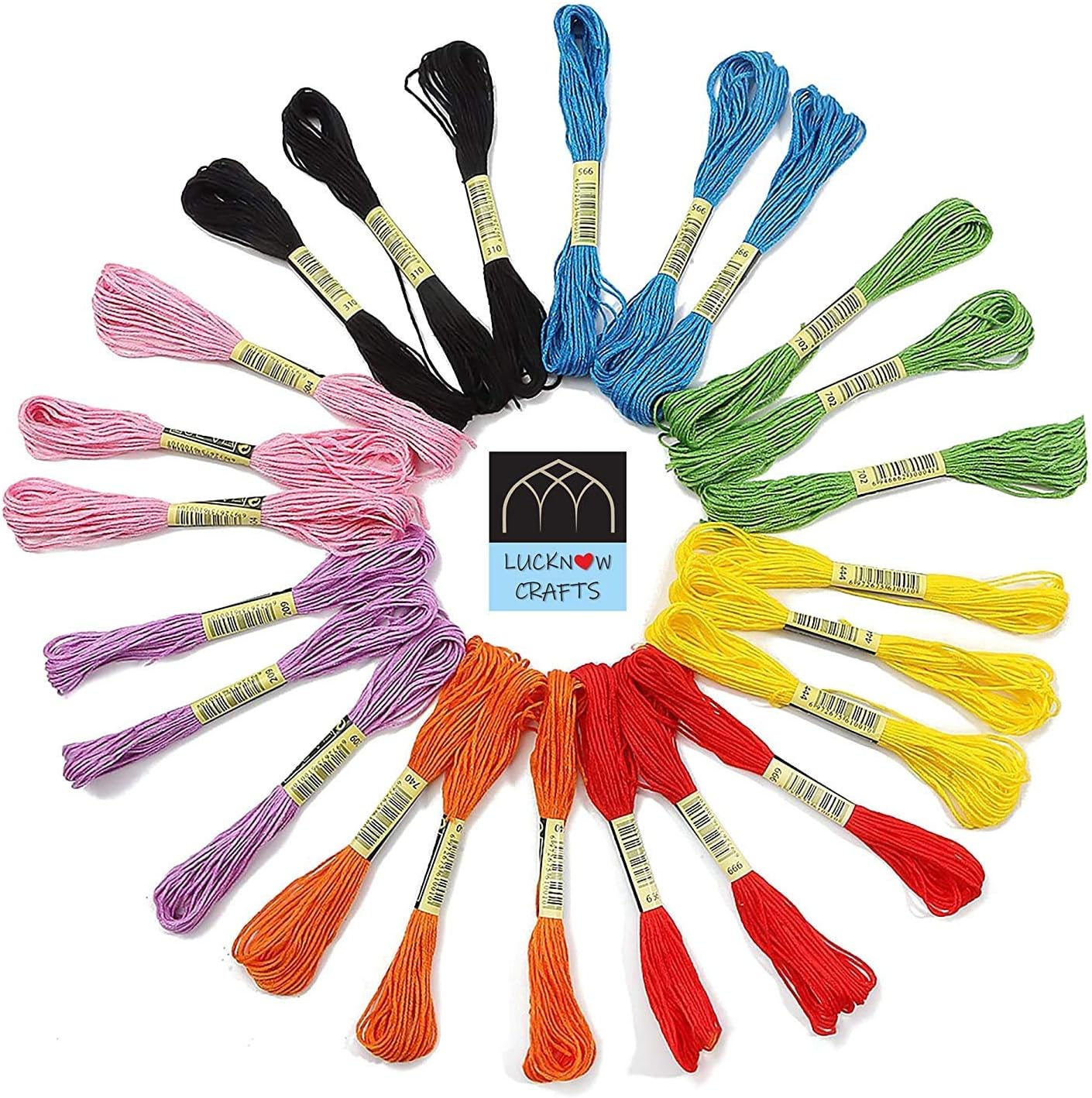 Lucknow Crafts Premium Hand Embroidery Cotton Thread Skeins for Craft Projects | Vardhman Rangoli Cross/Stitch Long Thread | Used for DIY Embroidery By Lucknow Crafts Features Each embroidery thread includes 6 strands. You can split the floss with your needs. Premium embroidery thread – THICK AND DURABLE STRING- 100% cotton vivid rainbow colors Full length skeins – 8.75 yard (8 meter) long and each comprised of 6 stands; It is made of durable soft polyester cotton material, great for any crafty projects, needlecraft, friendship bracelets, stringing beads, hand embroidery, cross stitch work, friendship bracelets, any decorations and more Uses: Perfect for Your Embroidery Projects Perfect for Making Hair Craft and Tassels Perfect for Making Friendship Bracelets Perfect for Making Variety of Handicrafts ► Explore Lucknow Crafts wide variety of tailoring and craft accessories.