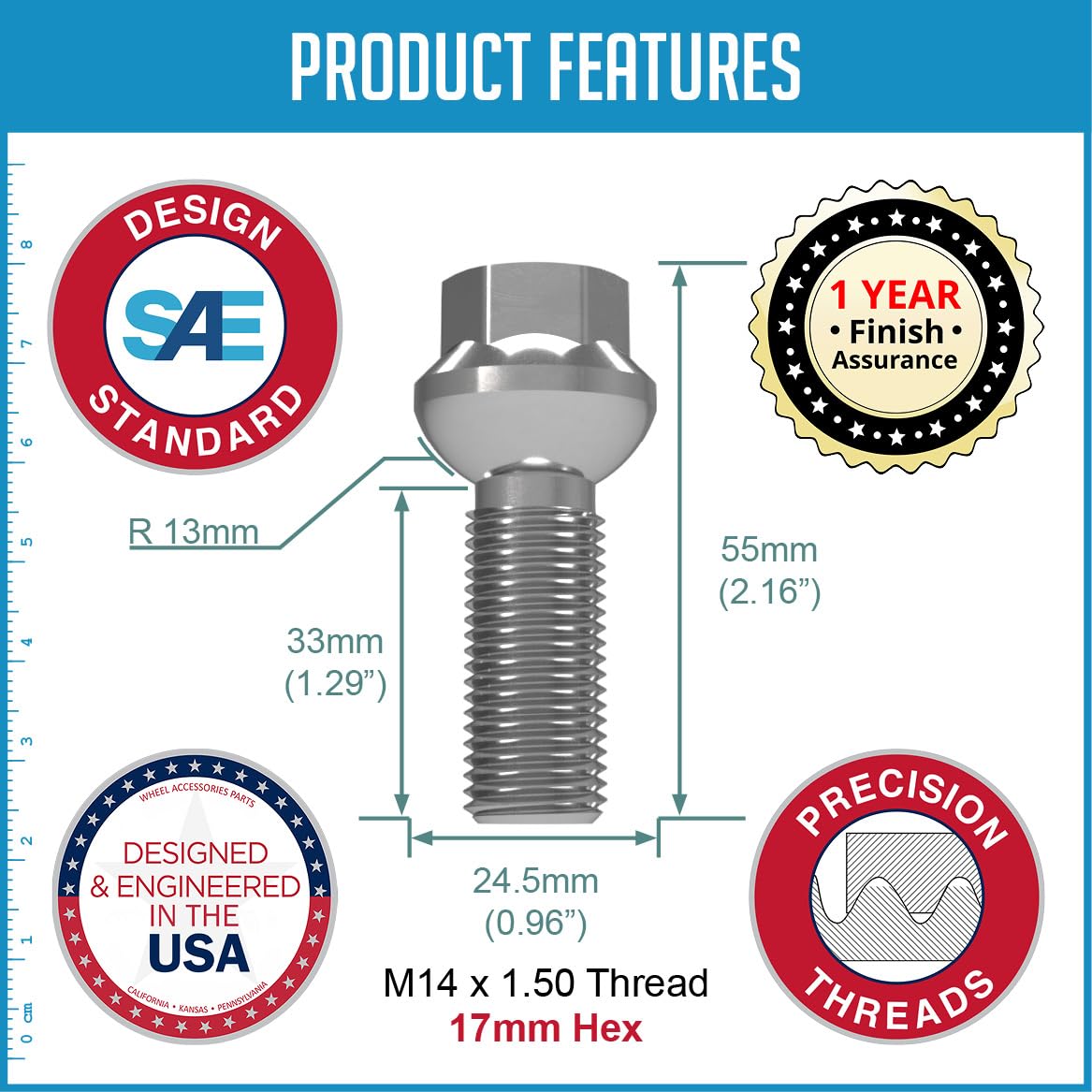 | Set Name | Wheel Accessories Parts 20 Pcs M14 x 1.5 Ball Seat OEM Style Lug Bolt |
