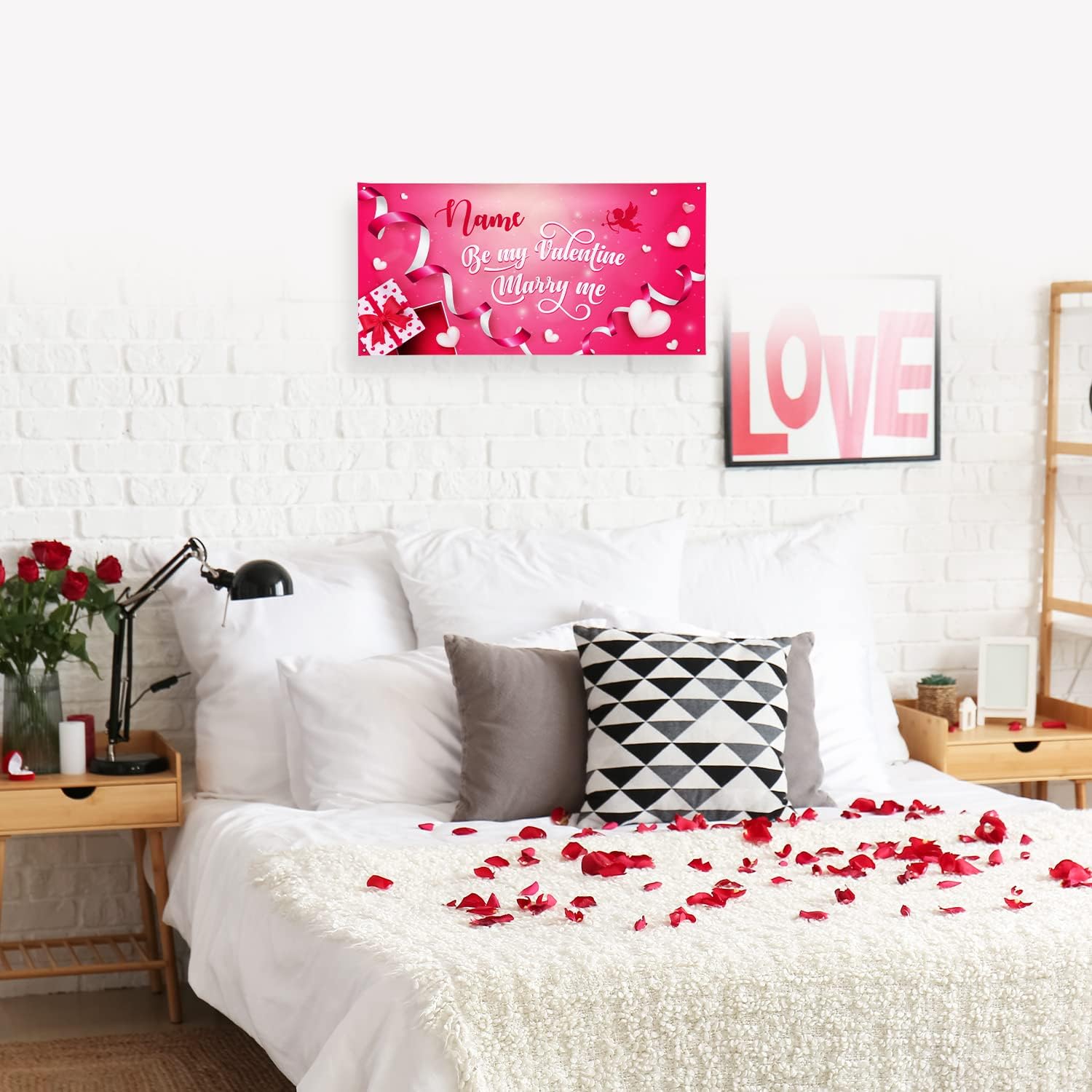 Personalized Valentine's Day Backdrop Banner, Custom Valentines Décor Vinyl Background Sign, Be My Valentines Marry Me Decoration For Home or Party Made in USA, 18x36 Inches Banner, Made in USA