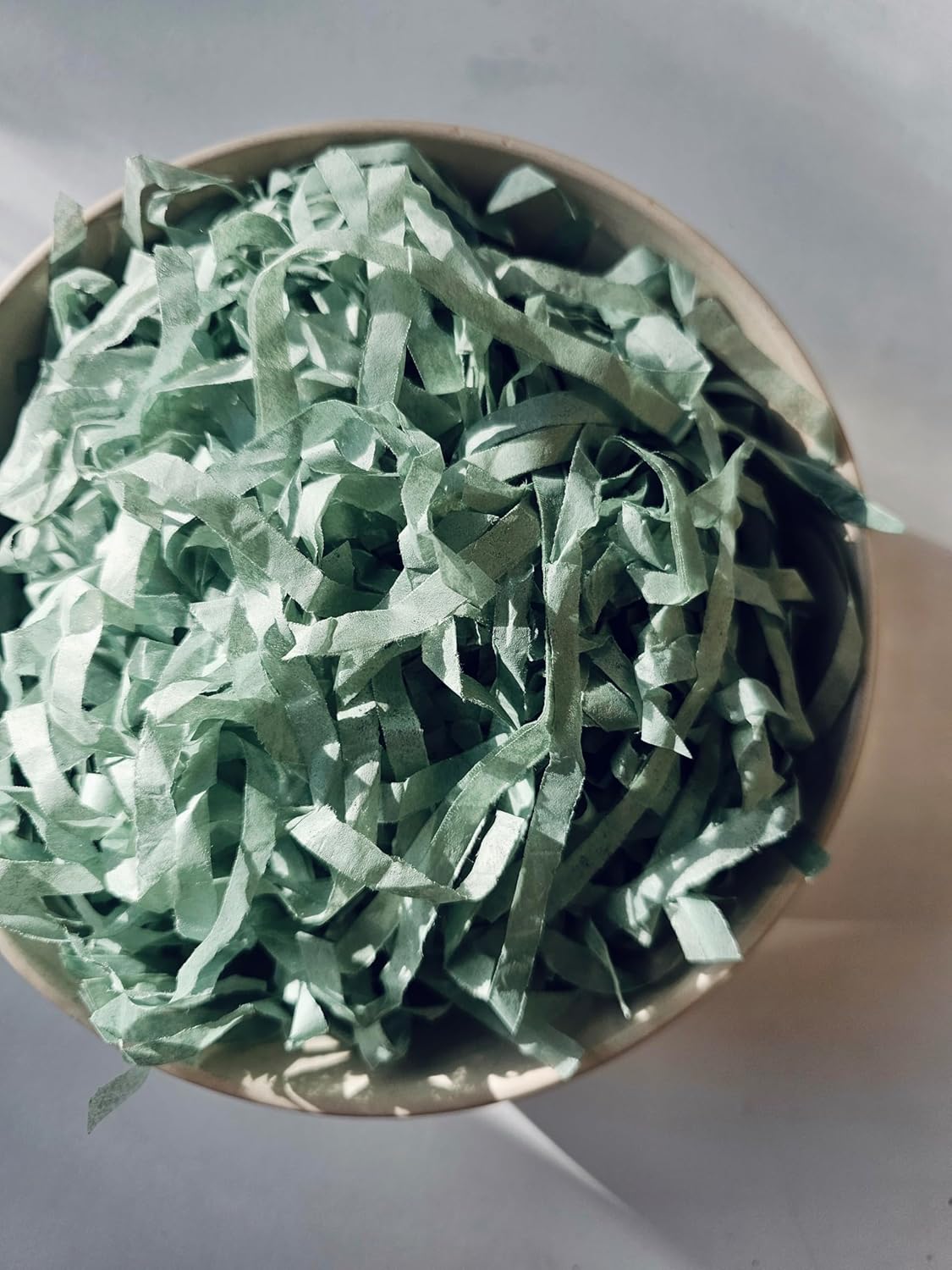 A choice of a 100g, 200g, 500g, 1kg or 5kg bag of tissue paper shred in a range of unique colors and shades. A 100g bag is enough for approx. 4-6 shoe-box size gift boxes (depending on fill density) when emptied out and given a fluff up. Narrow grass-cut shred (approx. 10mm wide). Please note the tissue paper shred will arrive dense/compressed and will need to be ‘fluffed’ out in a large container to see a true amount. We stock over 100 colors and varieties of shred/tissue, including plain solid colours (in pastel, floral, vintage, vibrant and bright shades), glitter, pearlescent, metallic and pattern. This listing is for a 200g pack.