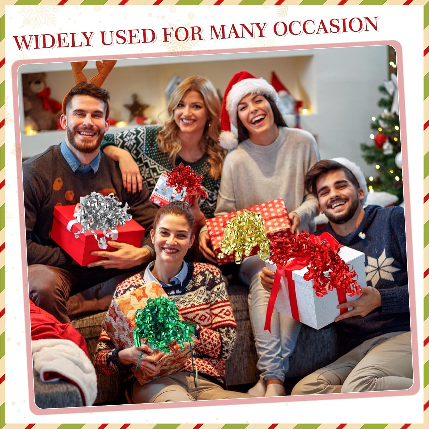 Features: These curly bows are exquisite and elegant, suitable for delighting your gifts for Christmas, birthday, wedding, anniversary, Valentine's Day and more. The curly ribbon for gift wrapping can be applied for decorating wine bottles, gift bottles, bouquets, basket packages, table centerpieces, etc., adding charms to your presents. Specifications: Material: quality polyester fiberColor: metallic red, green, silver and goldSize: about 1/4 inch wide, 31.5 inch in straighten length, 7.87 inch in diameter after crimpingPackage includes: 60 x Curly ribbon bowsNotes: Manual measurement, please allow slight errors on size. The color may exist a slight difference due to different screen displays.
