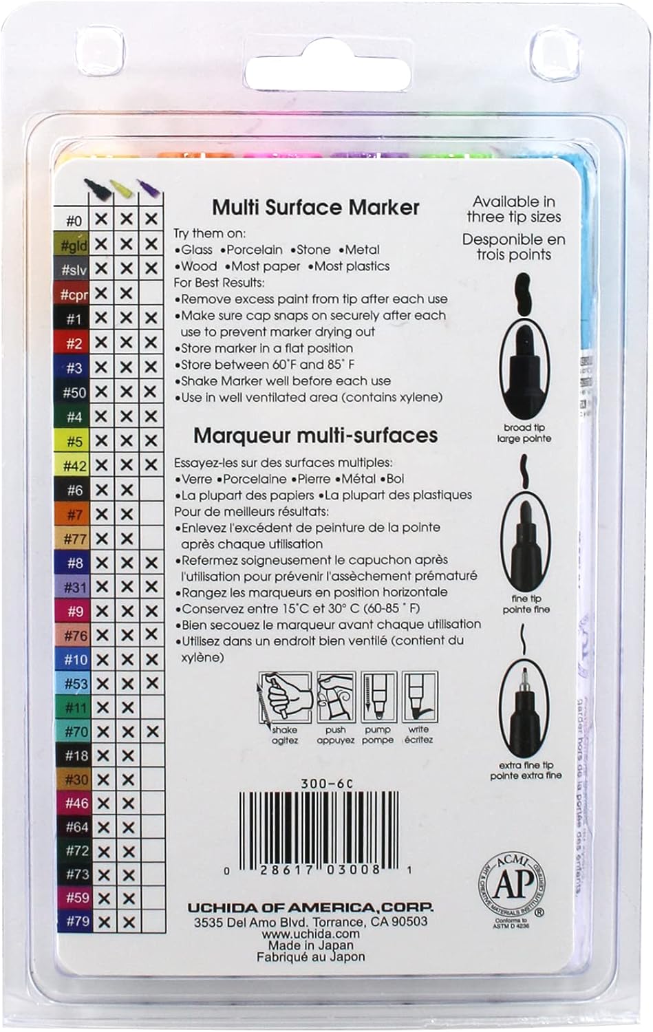 | Included Components | 6 markers (1 each of yellow, orange, light blue, light green, rosemarie, and hot purple) |