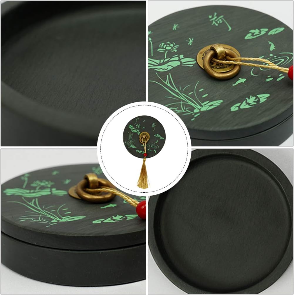 DescriptionMade of natural stone material, this inkstone is safe and durable, featuring pattern design, more fashionable and . It is an ink container for oriental writing and painting or drawing. Suitable for students, teachers, painting lovers, Chinese calligraphy lovers, etc.Features-Color: Black-Material: Natural Stone-Size: Approx. 10 x 10 cm / 3.94 x 3.94 x 0.79 inch - With smooth inner surface, it grinds ink well from the ink stick.- The beautiful summer lotus design and round shape, Chinese traditional design for you.- Our item is workmanship, so it could be easy to ink.- Practical and , it sells very well between beginners.- The product is light and easy to carry, and always owns materials.Package Including1 Grinding Stone