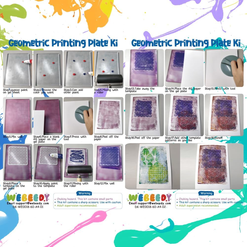 Reusable gel plate are easy to clean, allowing you to make creative drawings quickly and easily. Package Included: A5 gel plate perforated handle marlene A5 white cardstock envelopes acrylic paint interlocking lines stencils