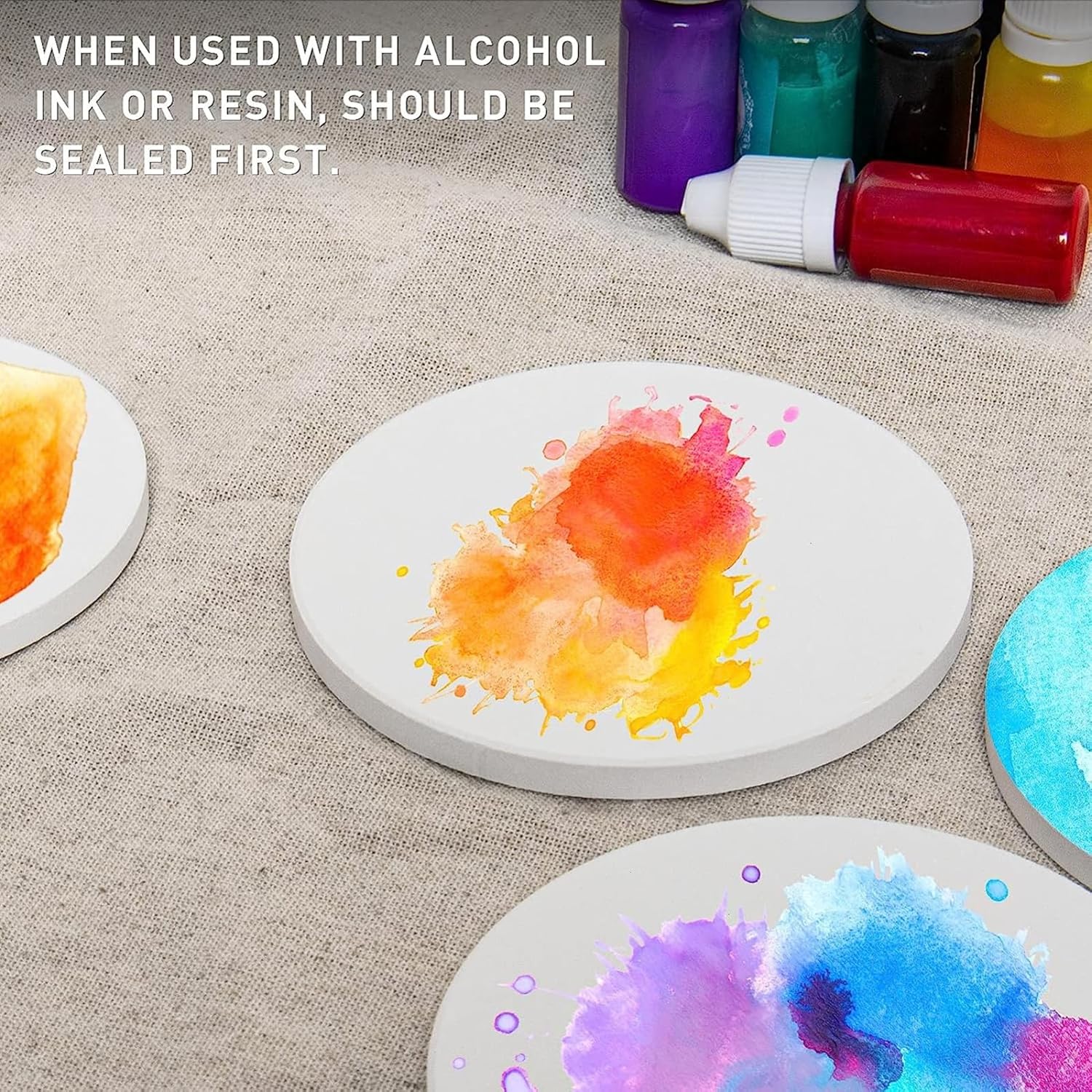 COYMOS 24 Pcs Ceramic Tiles for Crafts White Ceramic Coasters for Crafts Blank Unglazed Ceramic Tile 4x4 for Painting, Alcohol Ink, Acrylic Pouring, DIY Coaster, Cork Backing Pads Included