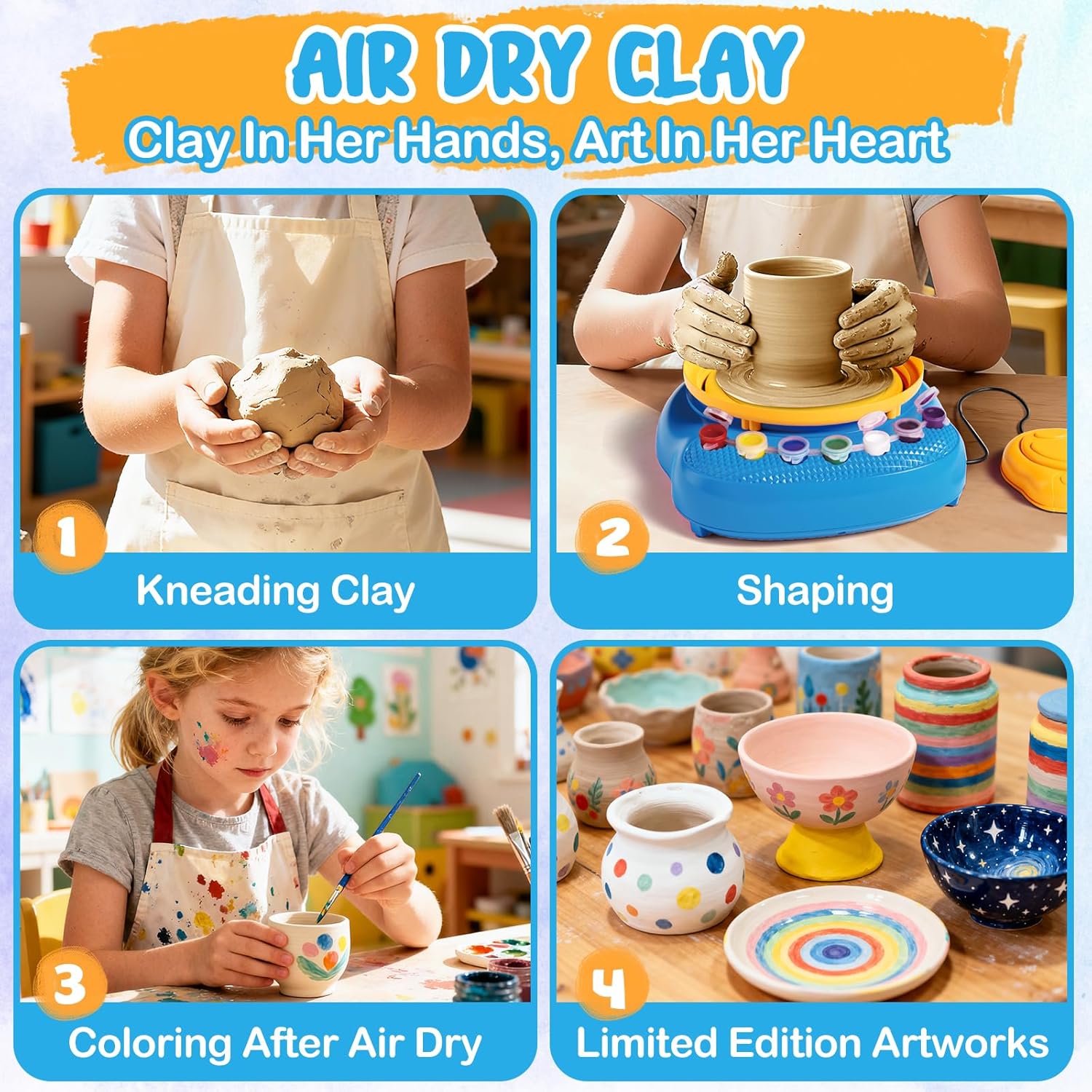 | Included Components | 3 packs of air-dried clay, 14 vibrant colors, pottery carving tools, brushes, sponge, palette, apron |
