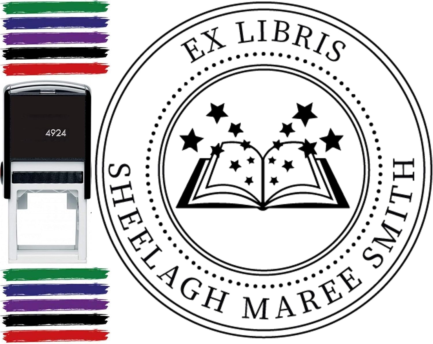 Custom Book Stamp For Teachers Or Students. Perfect Book Stamp, From The Library Of Stamper Ideal for labeling your library books and homework. This could also be used as a hand made by stamp or a Thank You wedding favor. Available in five colors, black, red, green, blue and purple Choose Your Design! Click Customize Now!! Choose Stamper Type Wood Handle Stamp + Ink Pad (choose from red, blue, green, purple or black) Self Inking Unit with crystal clear impressions Impression Size: 7/8" x 2-3/8" These stamps are also perfect as birthday presents, gifts, weddings and everyone for everyday use. Ordering is easy! Click Customize Now and Simply provide stamp information in the mandatory box during checkout. Select Your Design and Color! ✓ Done!100% USA Made Choose from Books Lotus Unicorn Fox Dog Paw Puppy Turtle Monkey Sunflower Cattle Worm Glasses and many more images.