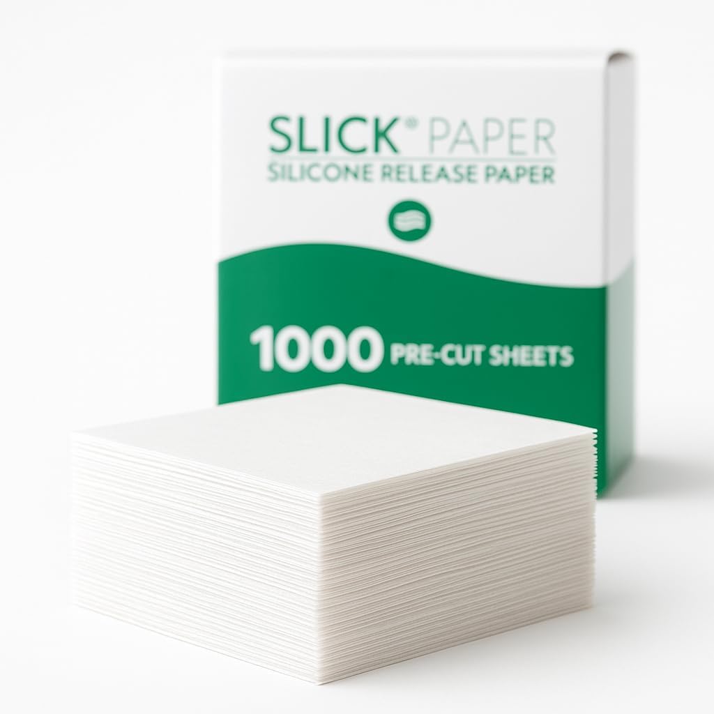 Oil Slick SLICK PAPER – Bulk Pre-Cut Silicone Release Sheets Save time, save product, and stay mess-free with our industry-leading, ultra-non-stick liner squares. Why SLICK PAPER Outperforms Parchment Medical-grade, terpene-proof silicone coating – releases concentrates & crafts without ripping. Heavy-duty 40 lb base paper – resists curling under heat-press plates. Dual-surface design – silicone side for release, plain kraft side for stability & labeling. Perfect For Rosin press extraction & slab storage Diamond-painting drill trays & sticker release liners Resin art, candle pouring, sublimation & HTV alignment Technical Specs Sheet size: 4.5 × 4.5 in (114 × 114 mm) Pack count: 1,000 sheets (10 inner packs × 100) Weight: 40 lb (≈ 65 gsm) pH-balanced, moisture-resistant, BPA- & PFAS-free Important Note Intended for craft & extraction use. Not approved for direct food baking. Oil Slick Quality Guarantee If your sheets ever fail to meet expectations, contact us for a no-hassle replacement or refund.