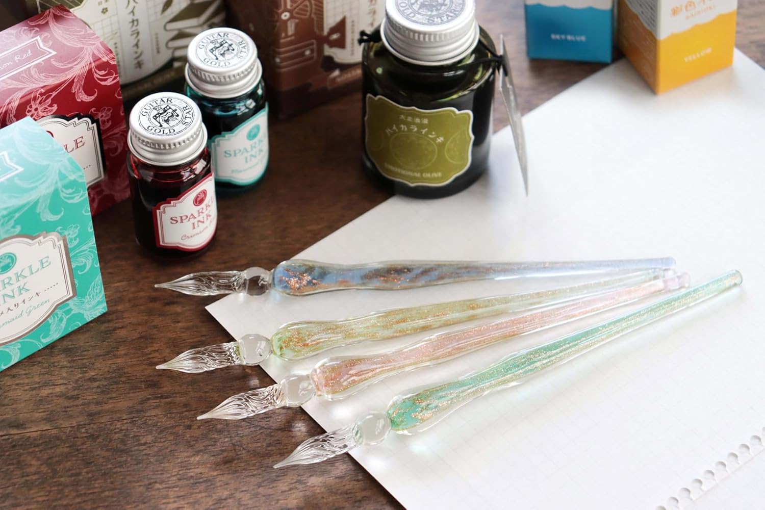 An affordable glass pen that is recommended for beginners. Handmade glass pen with brilliant glitter. ● Easy to wash off ink with water, so color changing is smooth. You can easily use a variety of ink to match your mood and occasion. Enjoy the delicate transparency of glass material and pleasant writing experience. ● Elegant design that is fun just looking at it. Enjoy hand lettering! (This is the main point! Affordable and easy for beginners. The gorgeous design is studded with glitter. Made of durable hard glass. Can also be used with water-based dyes and pigments Ramainki
