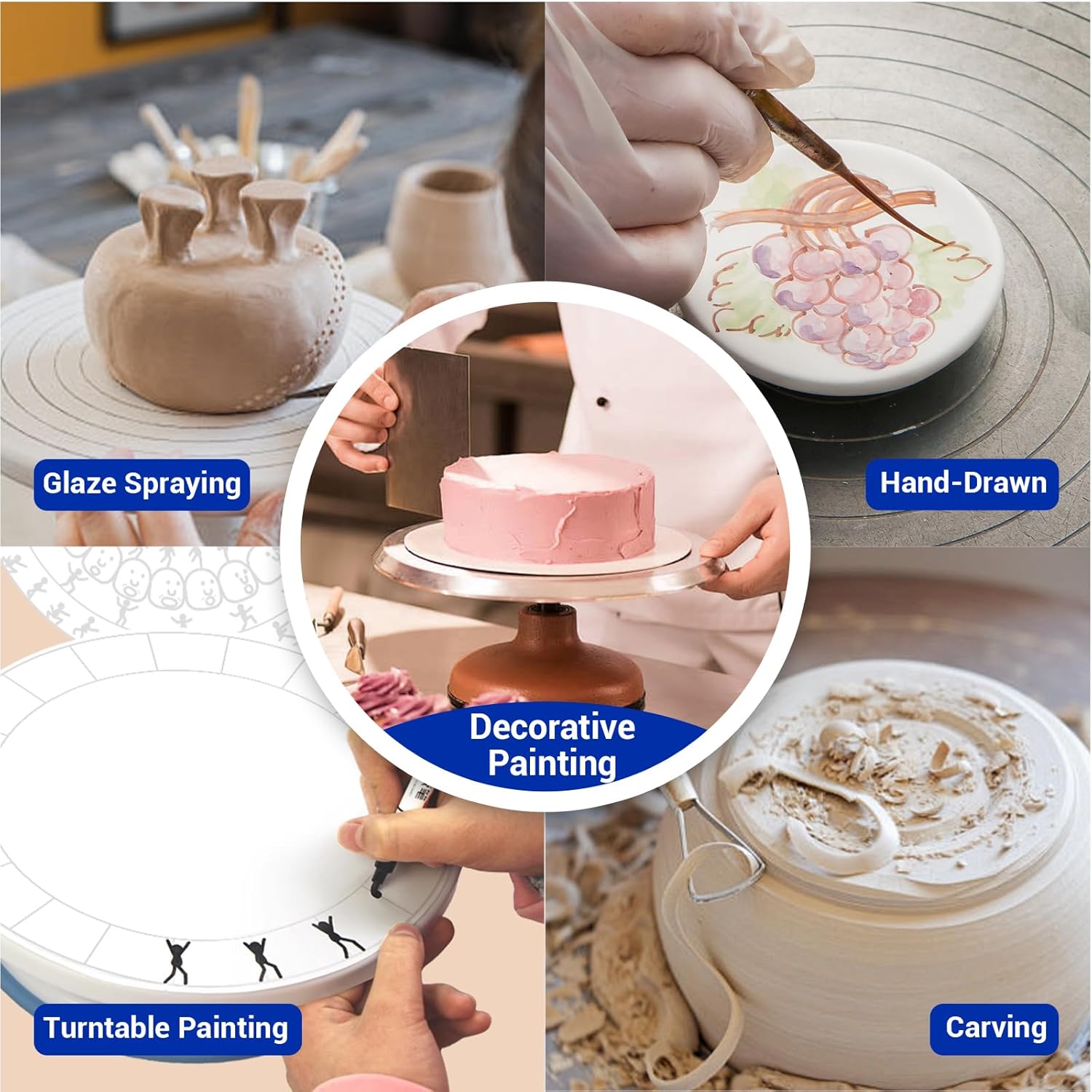 7 Inch Pottery Wheel, Double-Sided Banding Wheel Turnable Aluminium Alloy Metal Sculpting Wheel with Ball Bearings for Ceramics Model Making Clay Modeling Cake Decor Paint Spraying
