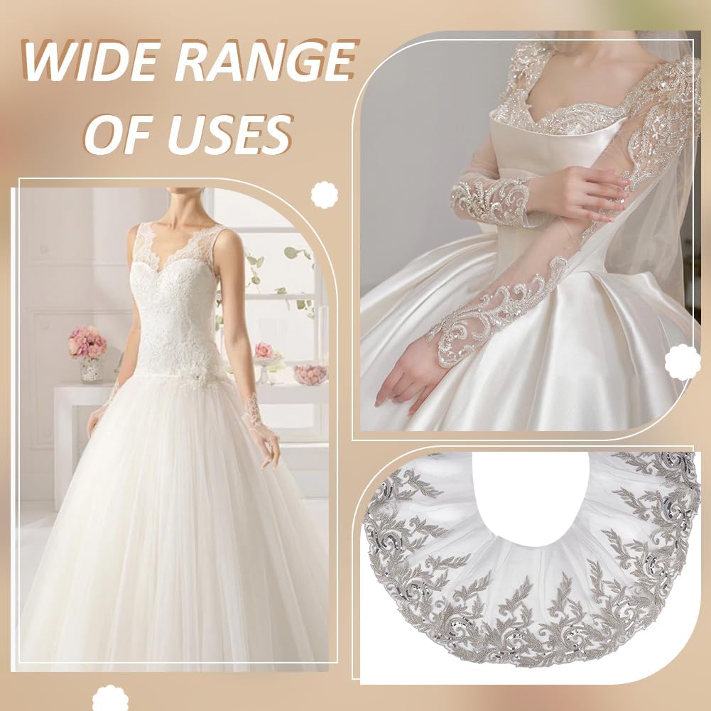 Introduce: Size: about SilverSize: about 322~345mm wide, about 2 yards/pc. Features: Our floral embroidery applique fabric is made of high quality polyester fabric, which is soft to the touch, comfortable to the skin, breathable with a sense of fashion, and strong and durable, can be used as a sewing decorative accessories for a long time. You can use this fashionable and elegant clothing fabric to make handmade sewing gifts for your family and friends, or give it as a gift to your family and friends who love sewing as a creative clothing accessory, it can be used to express your heartfelt wishes and blessings. Note: Manual measurement, please allow slight errors on size. The colors may exist slight differences due to different screens.