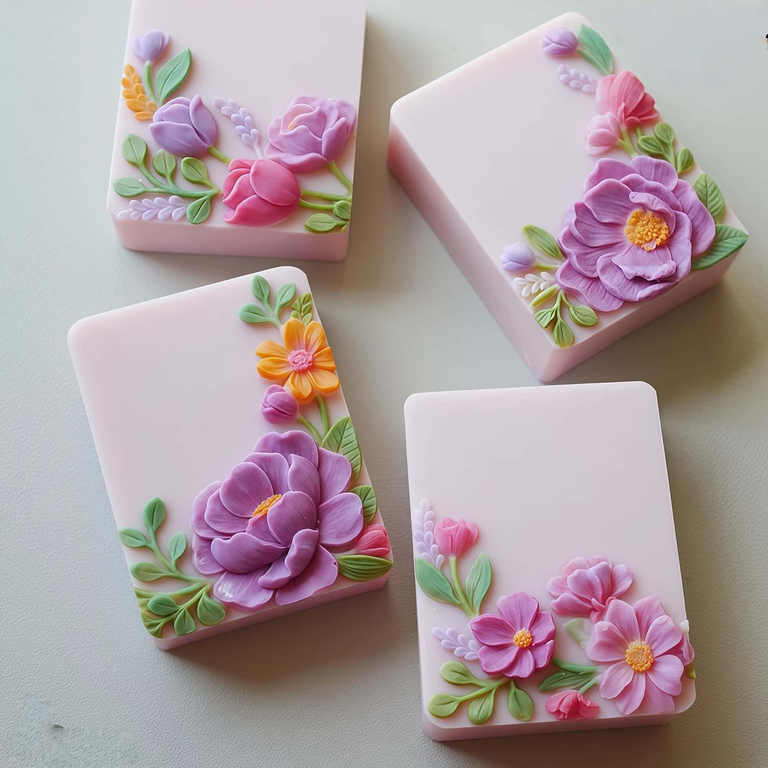 • Notification: this is a 4 cavities mold for 4 different flower relief soap, pls check the final soap size before order the mold.