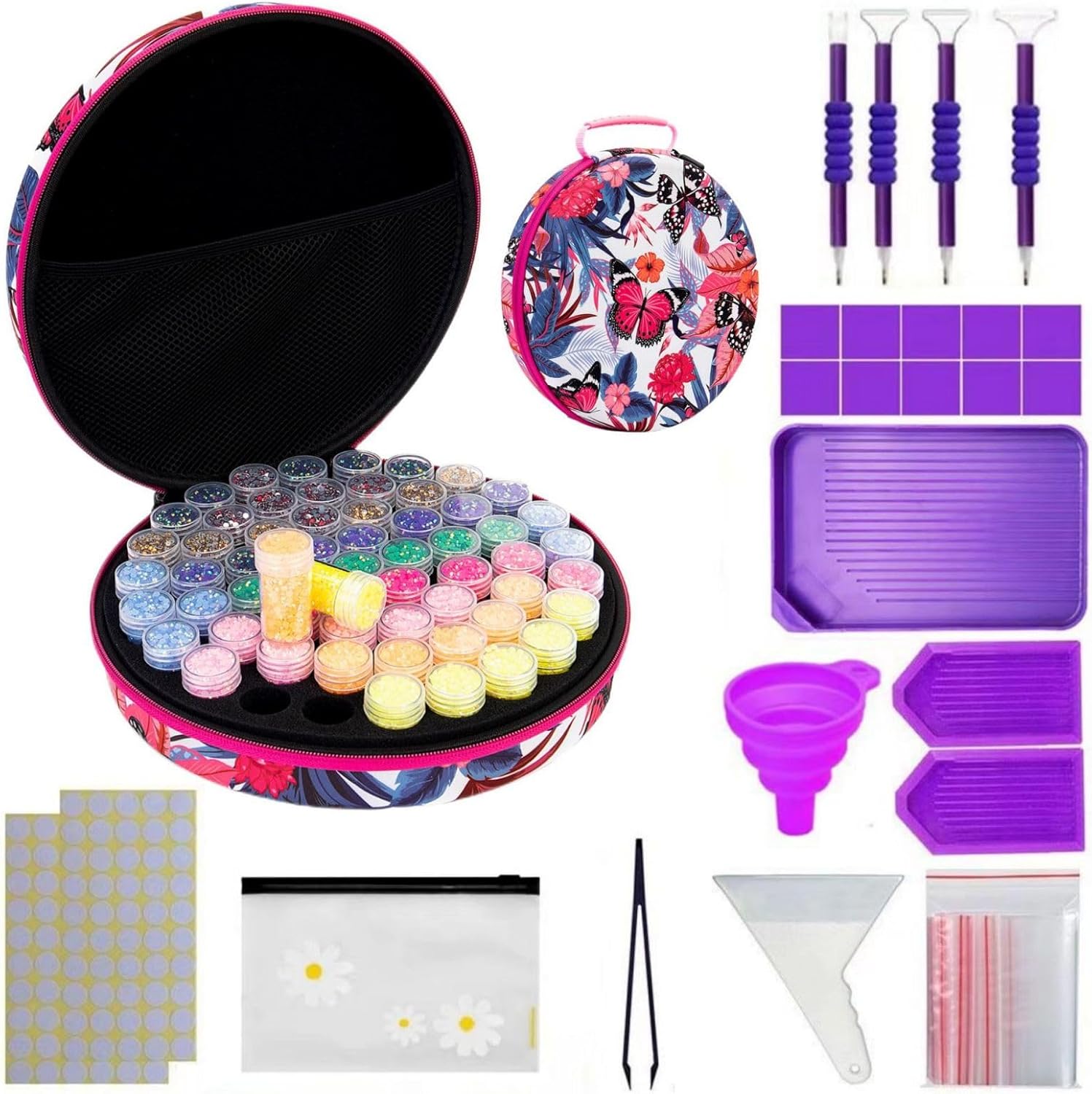 | Included Components | storage bag with 60 compartments, 60 small bottles, 1 soft funnel, 1 caliper, 1 tweezers, 4 dot drill pens, 3 drill disks, 10 clay, 2 label paper, 10 small clear bags, 1 storage bag, 4 dot drill pen tags, diamond art accessories and tools |