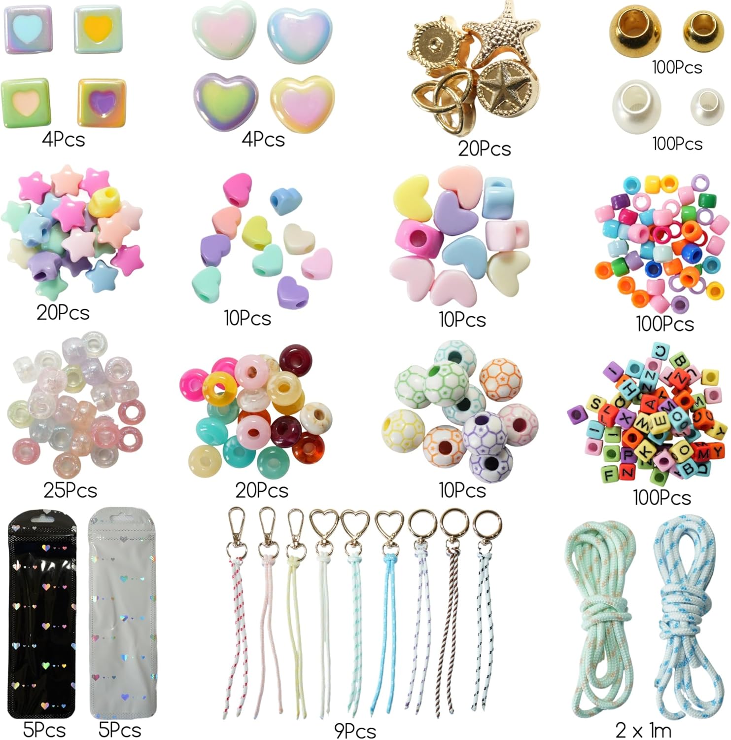 | Included Components | Vibrant acrylic beads (heart, star, letter beads, etc.), nine colors of cords, spare strings, metal clasps, compartmentalized plastic case |