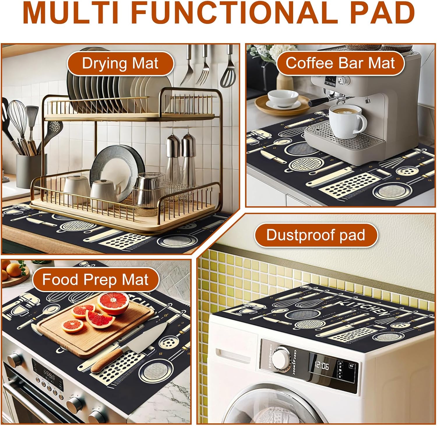 The HOMETITUTE stove top cover for electric stove measures 28x20 inches and is designed to protect your glass cooktop, counter, or RV range top from scratches, spills, and dirt. Crafted from heat resistant silicone, it doubles as a dish drying mat or countertop protector. With its modern kitchen utensil design, it enhances both practicality and decorative style in your cooking space.