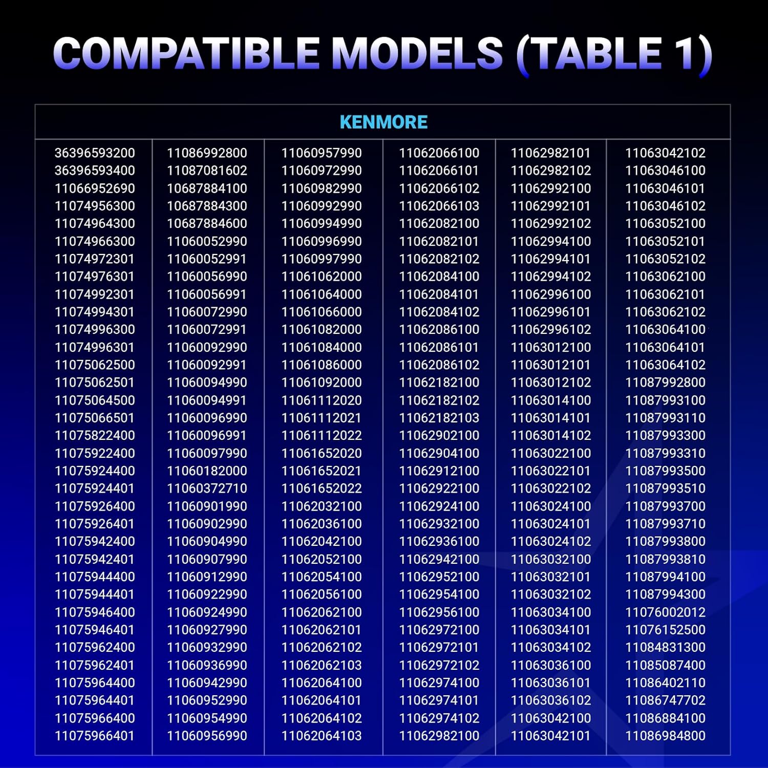 | Included Components | 4 x W10314173 Drum Roller Support Wheel (4 red wheels, 8 pcs tri-rings, 4 pcs retaining washers), 1 x 279640 Dryer Idler Pulley, 1 x 661570V Dryer Drum Drive Belt (93.5'' long, 1/4'' width with 4 ribs and 3 grooves) |