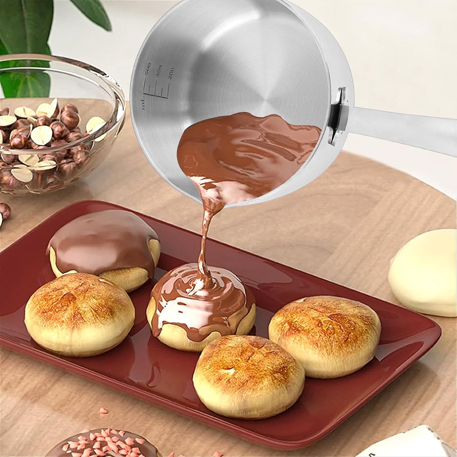 The Butter Warmer Measuring Pan is the ultimate compact kitchen tool designed to simplify and elevate your small-batch cooking Its professional-grade 3-ply construction ensures rapid and uniform heat distribution, eliminating hot spots whether you're gently melting butter for baking, crafting a single-serving cheese sauce, or making teriyaki glaze. Beyond melting, its precise measurement markings in both ounces and milliliters take the guesswork out of preparing recipes. From heating milk for coffee to cooking a single egg or reheating a small portion of soup or vegetables. This 17-oz capacity pan is your go-to solution for effortless and precise cooking. Package: 1×Butter Melting Pot Specifications: Material: stainless steel Color: silver Size: 9.45×4.5×2.56inch/24×11.5×6.5cm Capacity: 500ml/17oz IMPORTANT: 1. Please check the package if it is in a good condition. 2. Our all items are come with 180 days free after-sale service, if you do have any questions please feel free to contact us!