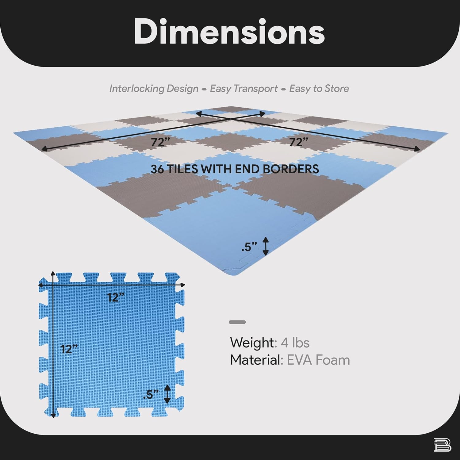 | Size | 36 Tiles, covers 36 Sq Ft |
