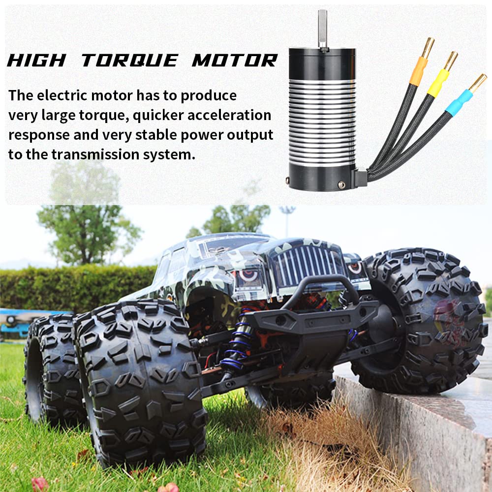 Scope of application: suitable for 1:8 short truck, off-road, upgraded version of big bike Four-pole rotor design, with high torque and high efficiency. Overall efficiency over 90% Extremely low temperature rise, long service life, strong overload capacity, and can meet 95% of applications without additional heat sinks or cooling fans Overall use of high-quality materials: high-strength aluminum alloy anodized shell, front and rear covers, high-performance high-temperature magnetic steel (no demagnetization for high-temperature use), imported high-speed bearings The rotor is fixed with special materials, and there is no bursting phenomenon at high speed of 80000rpm