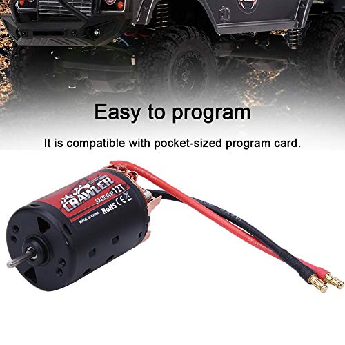 Feature: 1. 【Practical Tool】This metal 550 brush motor has excellent throttle linearity and good hand feel. It is a good accessory for your RC car. 2. 【High Performance】Our remoted control speed change motor has strong resistance to current and excellent heat dissipation performance. 3. 【Durable and Easy to Program】Our 550 brushed motor is easy to program and compatible with pocket-sized program card. The motor is made of high quality material and has long product life. 4. 【Application】This 550 brushed motor is specially designed for 1/10 RC crawler car. 【HELPFUL】Real a nice item, a good chocie for you. Specification: Item Type: Brushed motor Product Name: 550 brushed motor Material: Metal and plastic Color: Black and red Product Size: Length: Approx. 79mm/3.1in Shaft Diameter: Approx. 3.175mm/0.13in Product Weight: Approx. 215g Fitment: Fit for 1/10 RC crawler car Voltage(Lipo): 7.4 V No Charge Current: <2.4A (10T), <2.1A (12T) No-Load Rotation Speed: 15500 + 12%RPM (10T), 13000 + 12%RPM (12T) Connecting Current: 2.1AMP (10 T), 1.7AMP(12T) Twist: 2525.1g.cm (10T), 2410.3g.cm (12T) In Turn: CCW Rounds: 10T / 12T (optional) Package List: 1 x Motor 1 x Instruction Manual