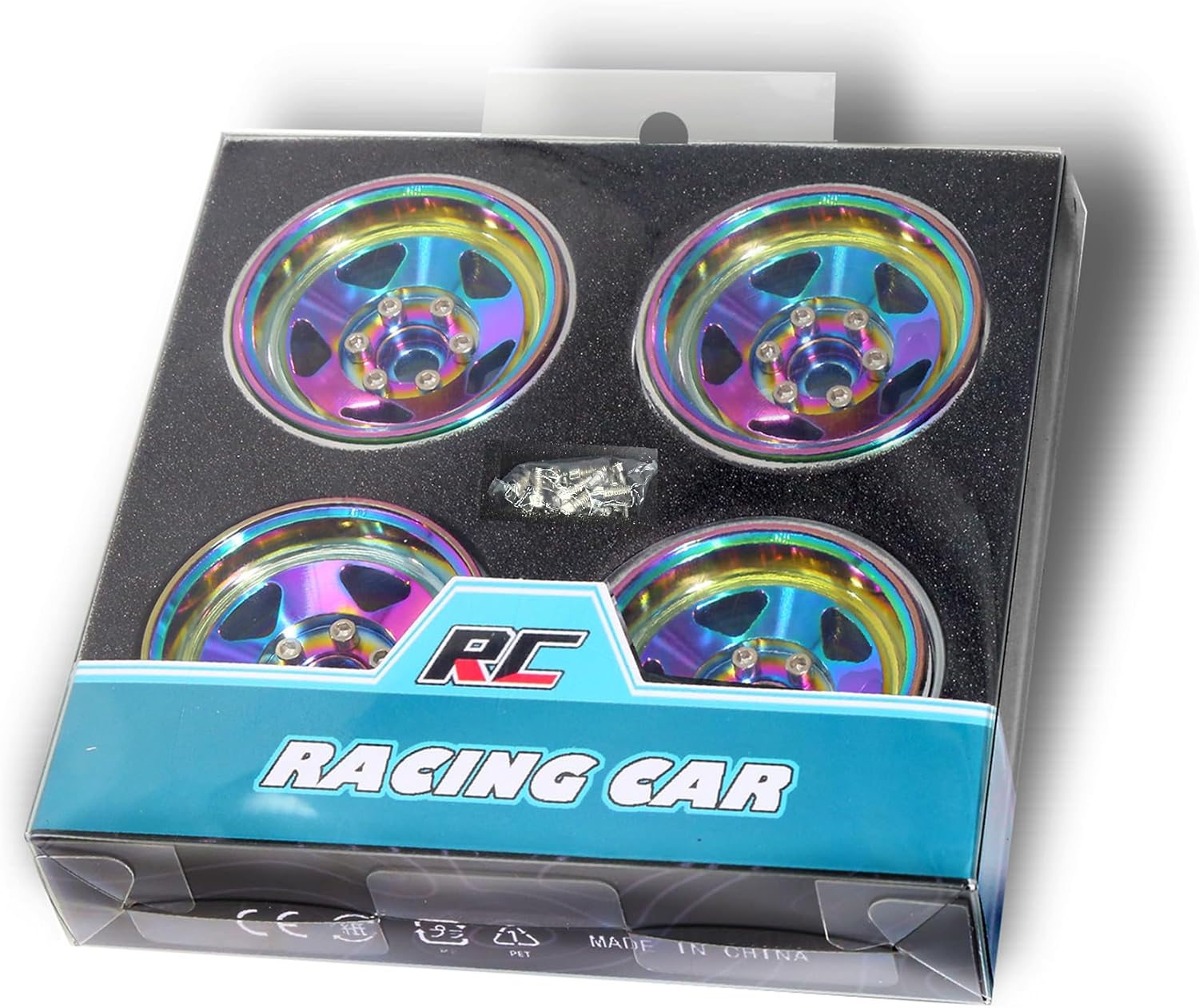 Features: Special controlled process and random oxidation. -10mm Negative offset wheel improves stability to get excellent off-road performance. Aluminum alloy materials, adds strength and precision where you want it most. Specifications: Product Name: 1.9“ RC Wheel Rims Color: Rainbow Quantity: 4Pcs/Set Material: Aluminum Alloy Weight:80g/pc Package List: 4 * 1.9 Beadlock Wheels 1.9 beadlock wheels 1.9 deep dish beadlock wheels rc crawler wheels