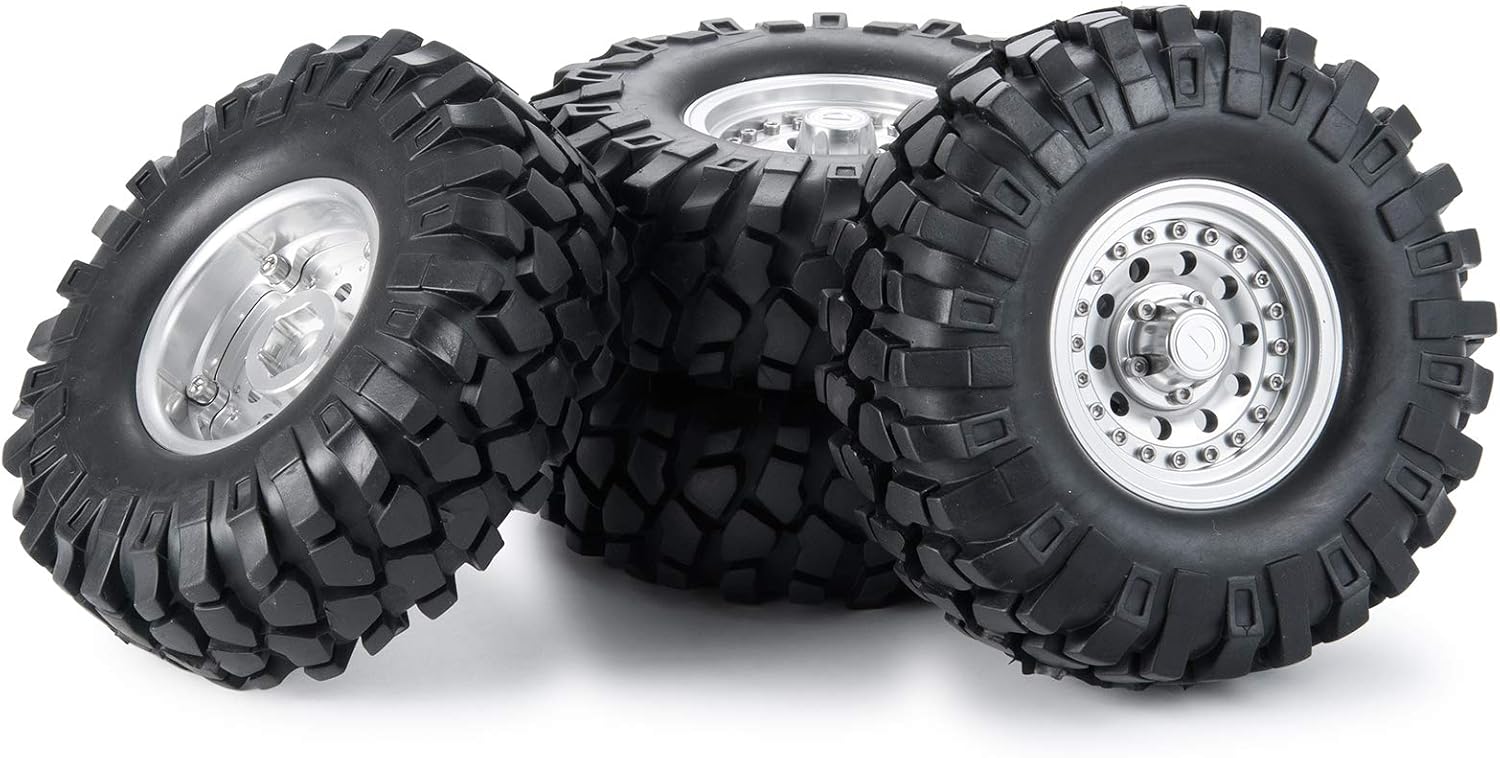 For RC TRX-4 Axial SCX10 SCX10 III AXI03007 Tamiya CC01 rock crawlers . Material: alloy wheel rim and rubber tire Tire outer diameter: 108mm Tire inner diameter: 48mm Tire width: 38mm Hexagon totation: 12mm Overall width of wheel rim: 27mm Color: as ebay pics shown Weight: 664g (4pcs) Package Included: 4pcs rubber tires 4pcs Aluminium Beadlock Wheels