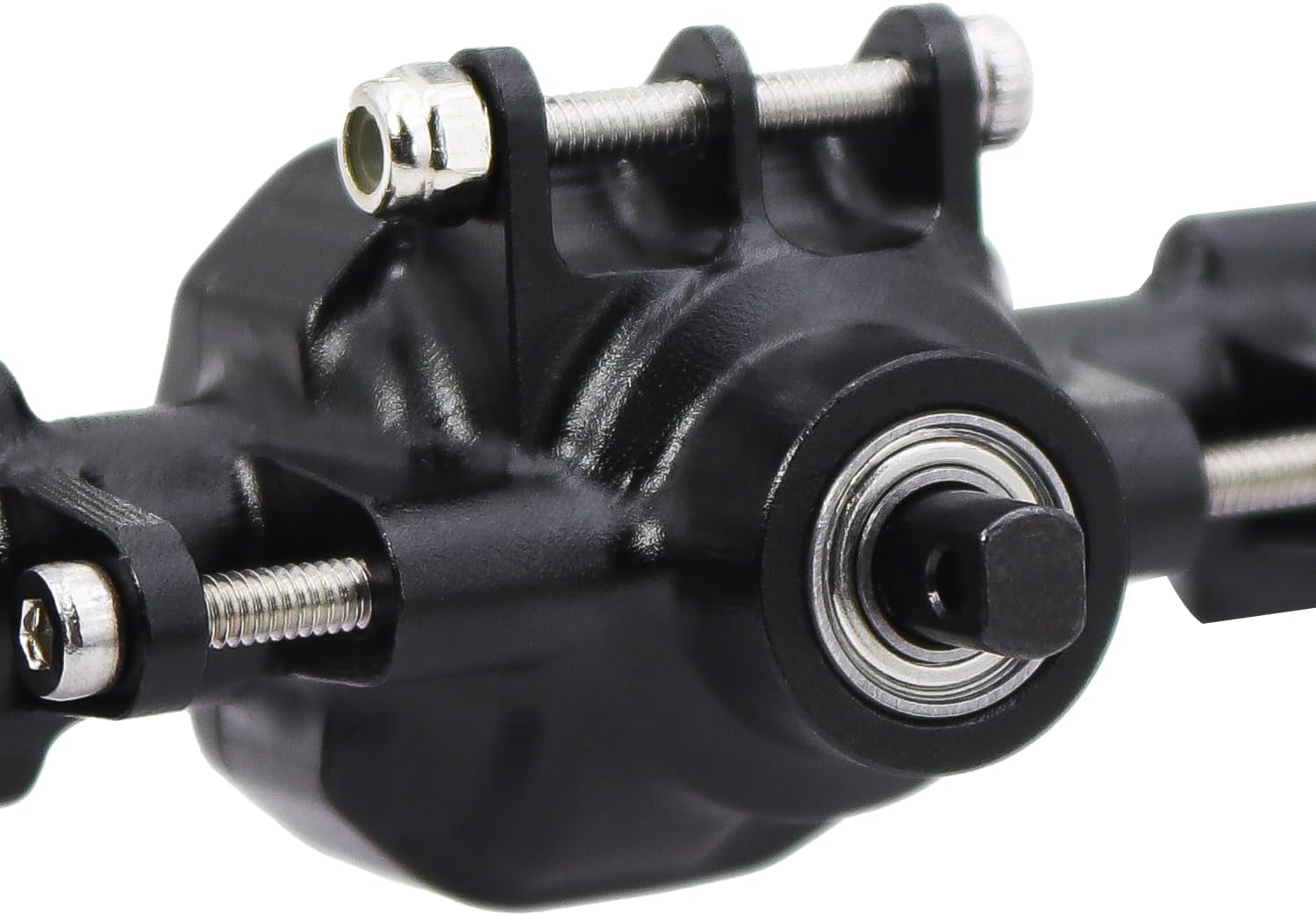 Specifications: Material: Aluminum Color: Black/Silver Total Length: 116mm/4.57in Pin to Pin: 96mm/3.78in Input Pinion Shaft: 4mm Weight (Front Axle): 77.8g Weight (Rear Axle): 61.2g Package List: 1*Front Rear Axle Set