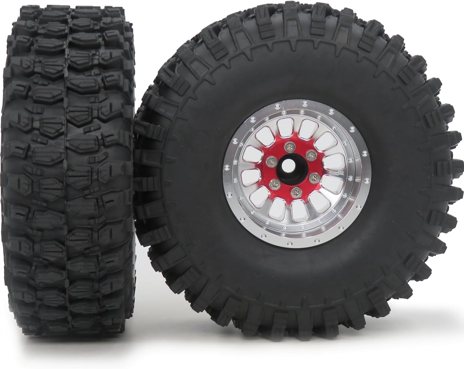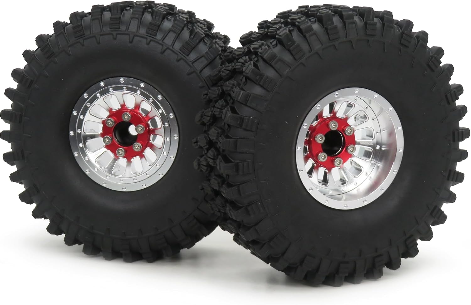 4pcs RC 1.9 Tires Height 4.72'' (120mm) Mounted on Aluminium 1.9 Beadlock wheels Adjustable 4 Offsets Rims Package List: 4x 1.9 Tires with foam + 4x 1.9 Beadlock Wheels Description 1. Adjustable 4 Offsets ( -2mm / -5mm / -14mm / -17mm offset, detail as the third picture): - 2mm Offset: CENTER PART in shallow room and RED GASKET outside - 5mm Offset: CENTER PART in shallow room and RED GASKET between center part and Hex wheel hub adapter - 14mm Offset: CENTER PART in deep room and RED GASKET outside - 17mm Offset: CENTER PART in deep room and RED GASKET between center part and Hex wheel hub adapter 2. Material: Aluminium Beadlock Wheel + Soft Rubber tire with Foam insert 3. Tires Outer Diameter: 120mm ( 4.72 inch ) 4. Width: 40mm ( 1.57 inch ) 5. Hex: 12mm 6. Weigth: about 170g/pc (1pc beadlock Wheel + 1pc tires with foam, Total Weight of the 4pcs set is 680g) Fit for Traxxas TRX-4 / RC4WD D90 D110 TF2 / Tamiay CC01 / Axial SCX10 90047 SCX10 III AXI03007 and other RC scale crawler truck ......