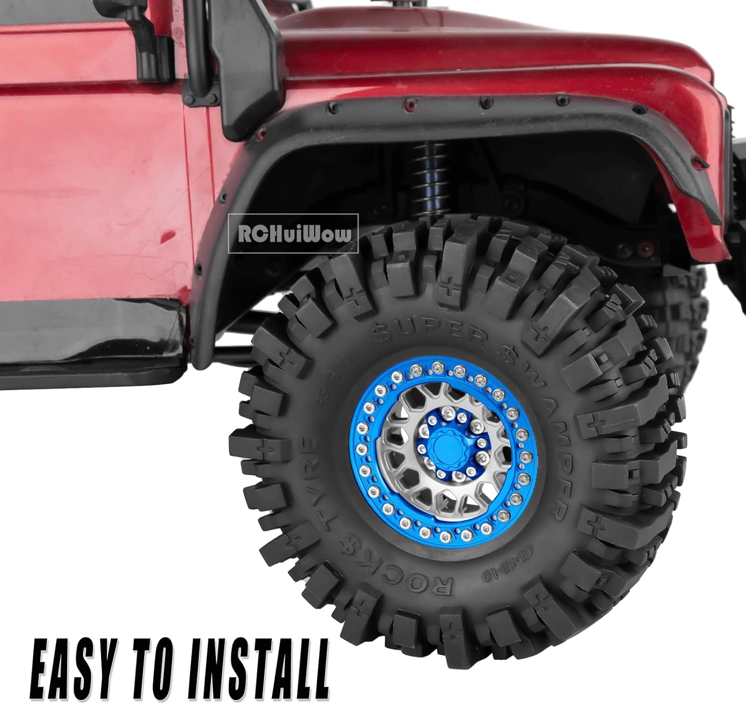 RCHuiWow RC 1.9 Beadlock Wheels 1.9 Beadlock Tires for 1/10 SCX10 90046 AX103007 TRX4 TRX6 D90 VS4-10 MST CFX Gen8 7 RC Crawler,Alloy Aluminium rc Wheel Rim w/ Rings & Rubber Tires,Silver w/Navy Blue