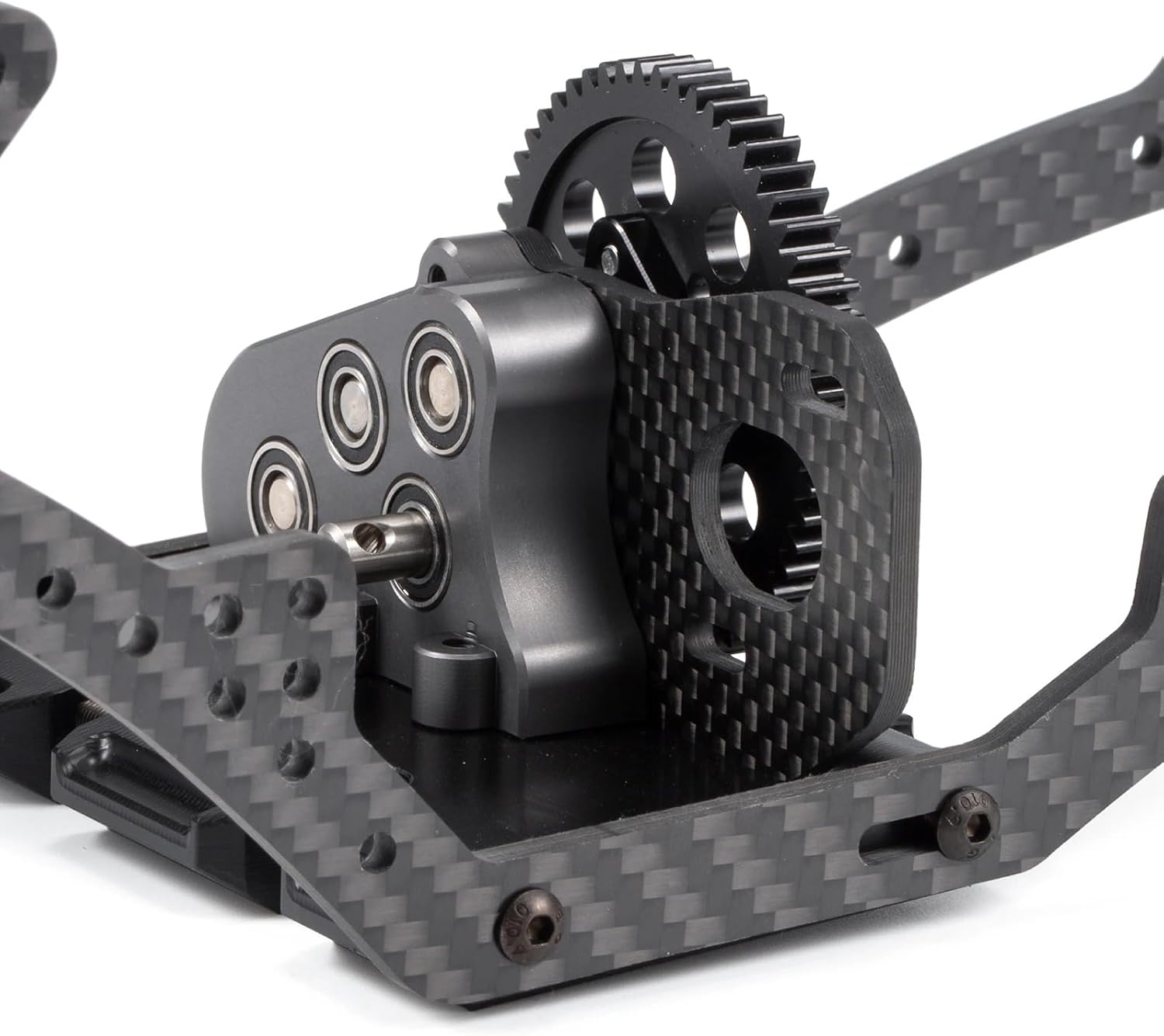 Features:Machined aluminum case, carbon fiber motor plate.Machined delrin angled skid plate.32P 56T delrin spur gear.Hardened chromoly gears.Machined steel output shaft.Steel sealed bearings.Weight: 122g, including skid plate.29% Front Overdrive or 17% Front Overdrive (optional)Complete assembled transmission.Fits 32Pitch pinions from 9T to 17T (Not Included).Designed for competition level LCG crawler platforms.Included:1x LCG OD Transmission