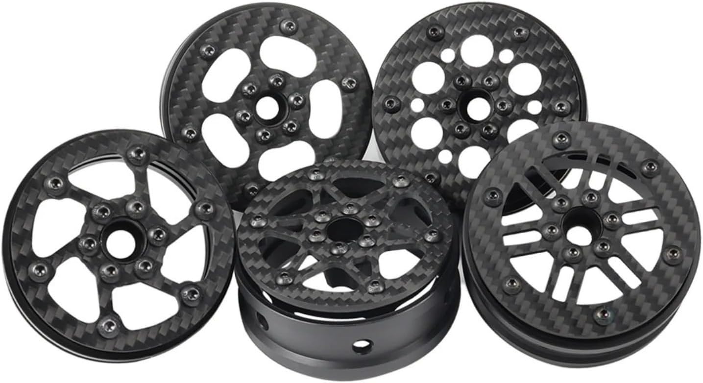 Machined carbon fiber wheel face CNC machined aluminum rear ring and hub, black anodizing CNC machined Delrin clamp ring High clearance inner wheel opening Rapid fast tire changes with 6 screws More offset optional can be achieved by changing hubs Material: Wheel Face: Carbon Fiber Clamp Ring: Plastic Rear Ring: Aluminum Alloy Hub: Aluminum Alloy Specification: Size: 2.2 Inch Outer Diameter: 67.8mm(2.67in) Inside Diameter: 56mm(2.2in) Width: 30.5mm(1.2in) Center Hole: 7mm Drive Hex: 12mm Weight: A:50.8g/pcs B:50.5g/pcs C:52.3g/pcs D:53g/pcs Package included: 4pcs 2.2" Carbon Fiber Wheel Rims Note: The color of the item may vary slightly due to photography and your own computer /Phone Please allow some little manual measurement error. Check your specific model's manual for compatibility,or Contact us. Customer Satisfaction Guarantee If you are not completely satisfied with our products, please do not hesitate to contact us to request a refund or exchange!