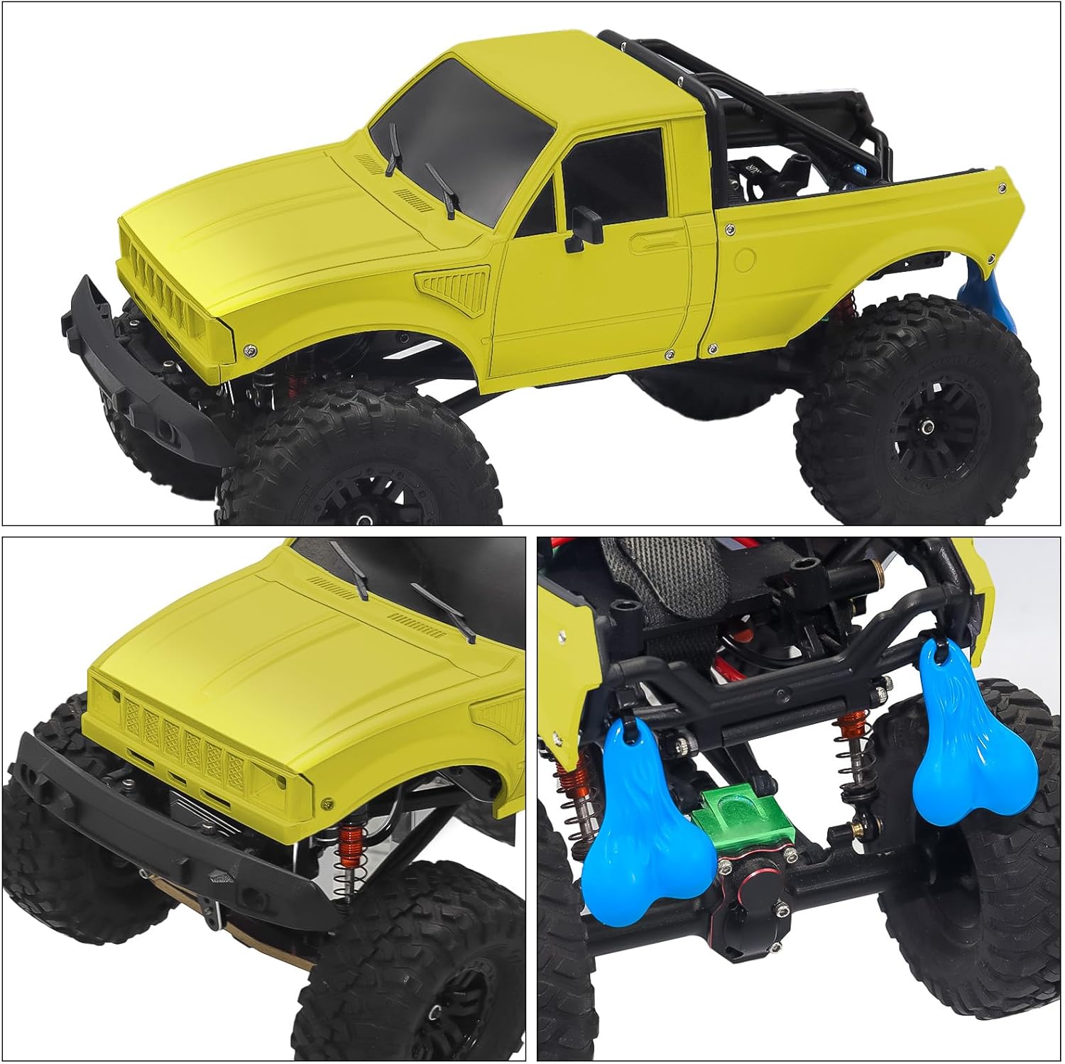 Features:Wide Compatibility: Fits for 1/24 RC Crawler Axial SCX24 series - C10 Bronco Wrangler Base Camp 4Runner. Perfect for upgradesPremium Material: ABS rigid pickup body featuring a rear bed rack, with two interchangeable front grilles for personalized stylingQuick Installation: 2 dedicated screws – twist to attach body shell to chassis. Easy for beginners, fast assembly/disassembly. Magnetic Front and hook-and-loop hinge design can lift body to quickly access chassisSimulation Kit: Comes with LED light kit and 2pcs hanging ball nuts to enhance visual appealLightweight: Weight 54g (1.9oz); wheelbase 133mm (5.2in), size 193 * 60 * 57mm (7.60 * 2.36 * 2.24in)Specifications:Material: ABS PlasticQuantity: 1PCSShell Weight: 54g(1.9oz)Wheelbase: 133mm(5.20in)Size: 193 * 60 * 57mm (7.60 * 2.36 * 2.24in)Color: Black&Purple / Red / Black&Green / White / Grey / Black / YellowPackage List:1 * RC Car Shell2 * Hanging Ball Nuts1 * LED Light kit