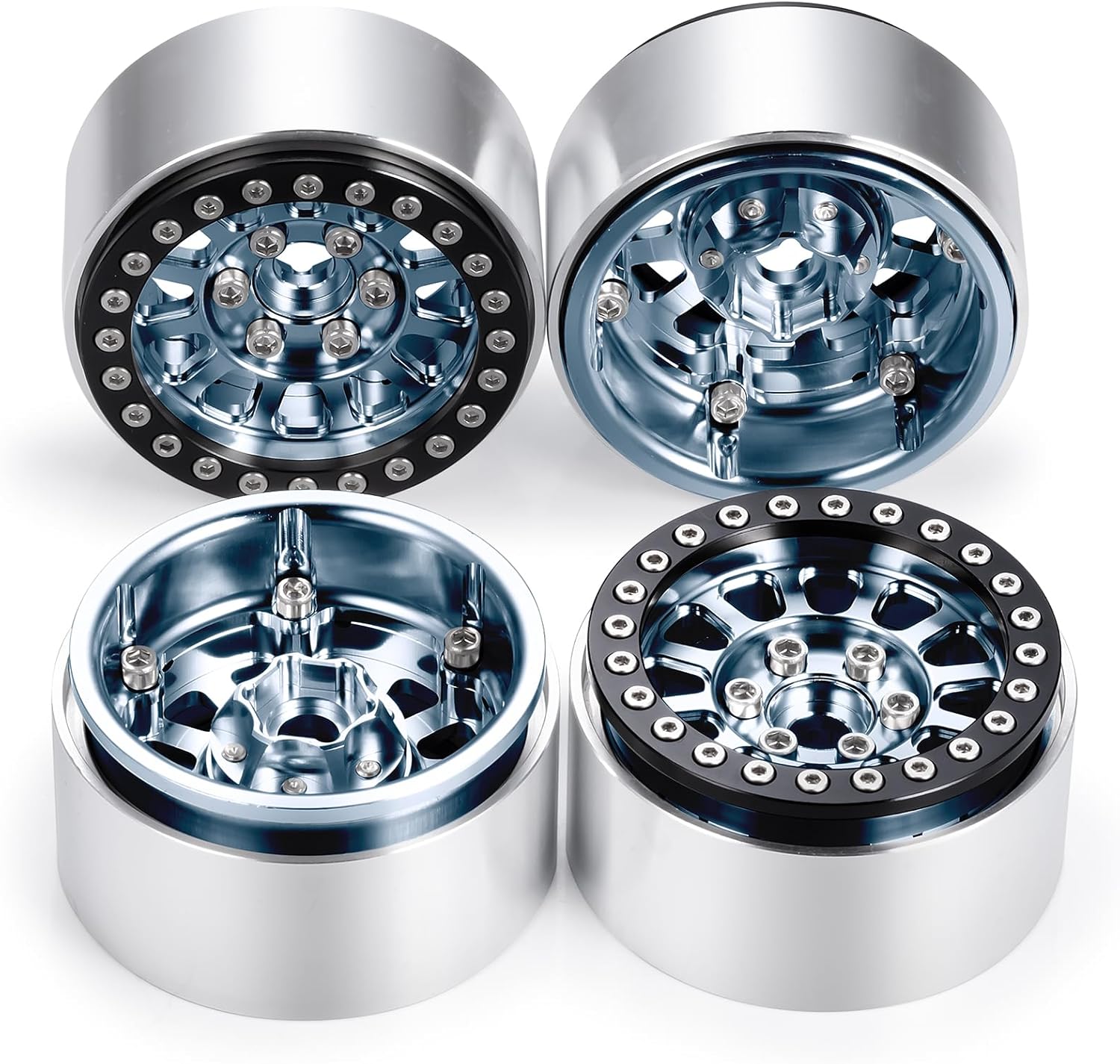 Designed for 1:10 scale RC crawlers including Axial Wraith, RR10, SCX10, VS4-10, TRX4, D10, and D90 models CNC machined from high-quality aluminum with anodized finish for enhanced durability and corrosion resistance Easy to replace and install QUE-T beadlock wheels can effectively improve the control performance of the remote control vehicle It can make your RC car more cool and attractive Package include: 4Pcs 1.9inch beadlock wheel rims