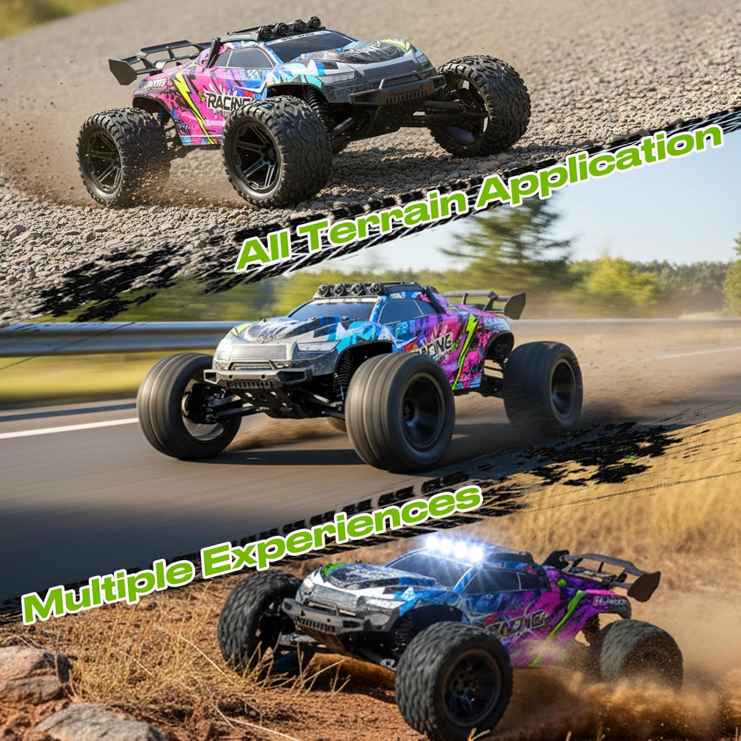 Experience the thrill of high-performance RC racing with this impressive 1:8 scale all-terrain vehicle. Built for speed and durability, this RC car reaches speeds up to 50KM/H and tackles challenging terrains with ease. The robust steel metal chassis armor provides exceptional protection during intense off-road action, while the high-capacity 2600mAh battery ensures extended racing sessions. Features include striking LED lights for visibility and atmosphere, precise proportional throttle control for smooth acceleration, and a high-precision ESC (Electronic Speed Control) for responsive handling. The rugged design includes aggressive all-terrain tires and advanced suspension system that handles climbing, drifting, and racing across various surfaces. Perfect for both beginners and experienced RC enthusiasts, this versatile remote-control car delivers an exciting blend of speed, control, and durability. Makes an outstanding gift choice for racing enthusiasts and adventure seekers looking for premium RC performance.