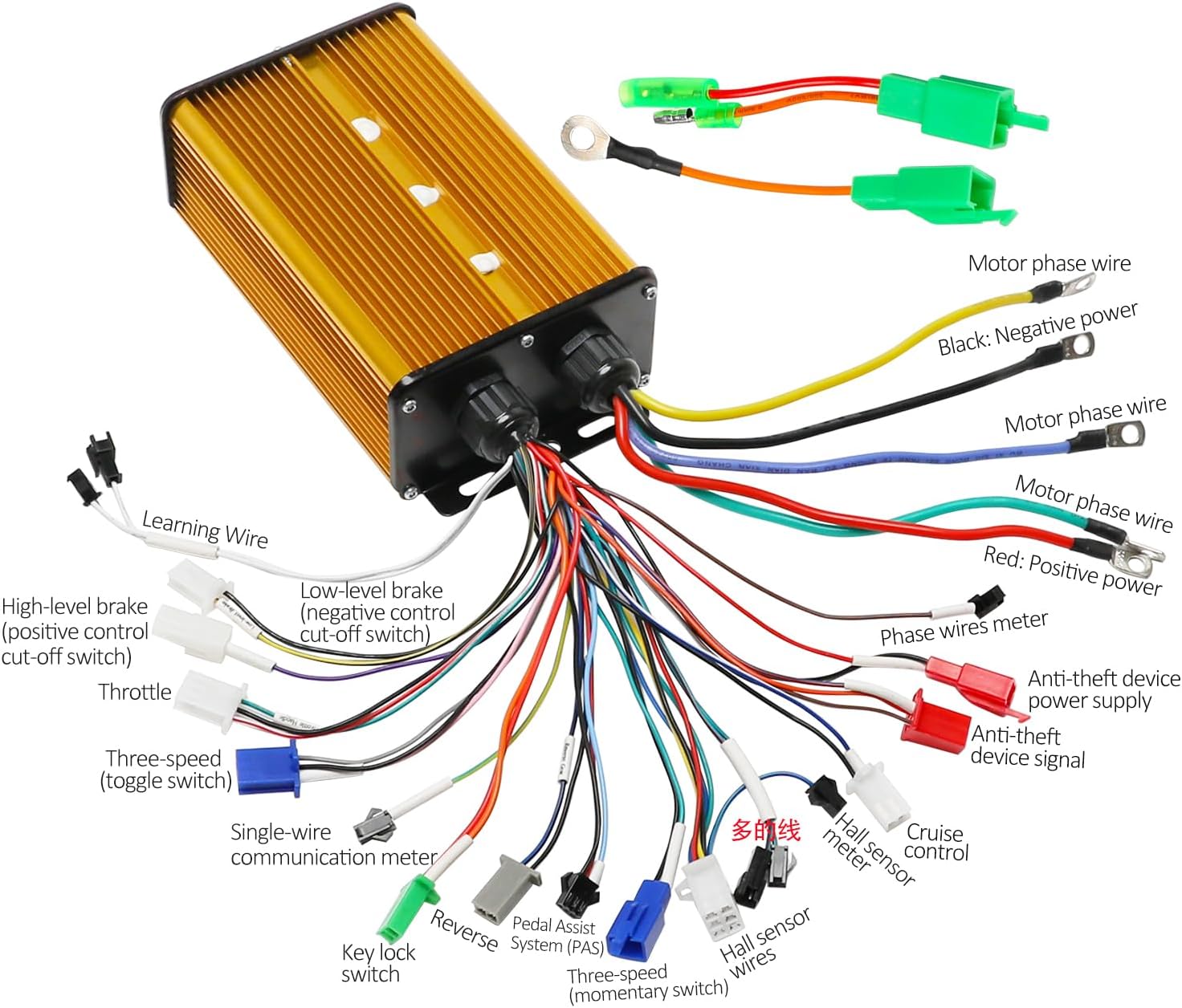 Technical SpecificationsComponent: Advanced Brushless Motor Speed Control AssemblyOperating Voltage: 36V to 84V DC Wide Range CompatibilityPower Output Capacity: 1500W to 3000W High-OutputCurrent Rating: 45A to 60A High Current OutputElectronic Architecture: 18-MOSFET Dual-Row DesignWaveform Technology: Advanced Sine Wave OutputOperational Modes: 3-Stage Selection (Eco, Normal, Power)Application: High-Voltage Off-Road Propulsion ManagementKey FeaturesIntegrated Electronic Propulsion Management: This comprehensive control assembly provides a total drivetrain energy overhaul, capable of managing 1500W to 3000W brushless hub motors for high-performance off-road projects.Advanced Sine Wave Architecture: Engineered with precise sine wave technology to ensure smoother throttle response, improved low-speed mechanical torque, and significantly reduced operational noise compared to traditional square-wave controllers.Industrial 18-MOSFET Construction: Built with a heavy-duty dual-row 18-MOSFET design, allowing for superior heat dissipation and efficient handling of 45A to 60A high-current output under extreme mechanical loads.Dynamic 3-Mode Power Delivery: Features selectable Eco, Normal, and Power modes, allowing operators to precisely adjust mechanical energy output and torque mapping for various off-road terrains.Wide-Range Voltage Adaptation: Offers seamless compatibility across a broad spectrum of battery voltages (36V, 48V, 60V, 72V, up to 84V), making it highly versatile for diverse custom electric vehicle builds.Compatibility & FitmentPrimary Application: Professional-grade electronic controller replacement for High-Voltage Electric Dirt Bikes and Motorcycles.Vehicle Fitment: Specifically optimized for custom electric Go Karts, ATVs, Quads, and heavy-duty Scooters.Universal Drivetrain Use: Ideal for DIY electric propulsion projects requiring a high-wattage (1500W-3000W) sine wave motor management interface.Package Includes1 x 36V-84V Brushless Motor Speed Controller AssemblyNotePlease confirm your vehicle's current battery voltage (36V-84V), motor wattage (1500W-3000W), and wiring phase requirements against these technical specifications before purchase. Because high-power electrical management and propulsion systems are critical for operator safety, we highly recommend that this sine wave controller assembly be installed and verified by a professional electrical technician or an experienced mechanical engineer.